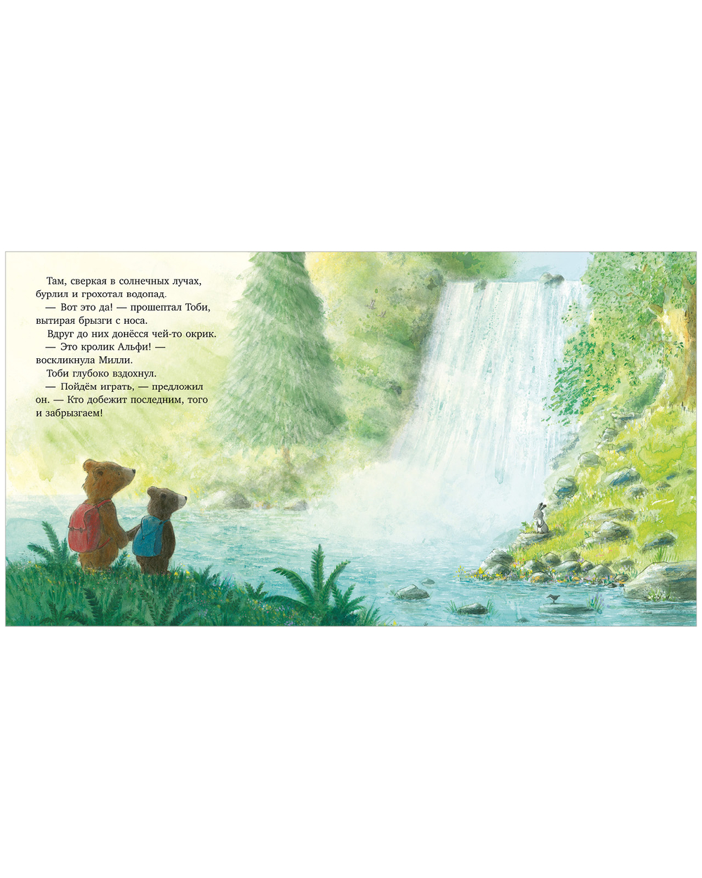 МЕДВЕЖОНОК БОИТСЯ ИДТИ С ДРУЗЬЯМИ К ВОДОПАДУ. Ведь он такой большой и громкий, вдруг затянет! Что же, мишке теперь пропустить всё веселье из-за страха? Хорошо, что у него есть сестрёнка Милли, которая точно знает, куда спрятать тревоги.