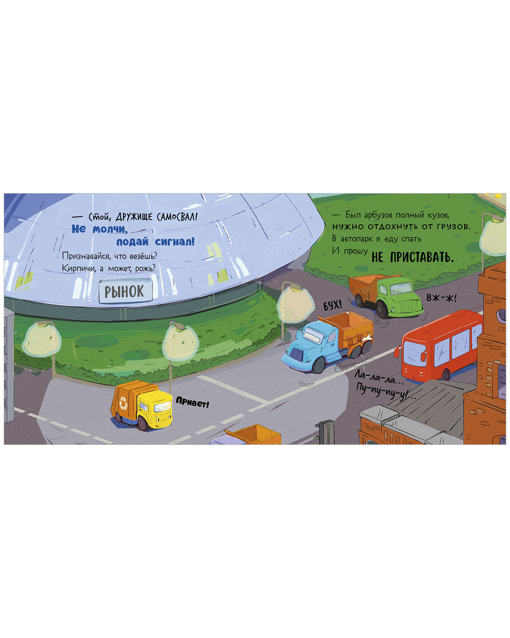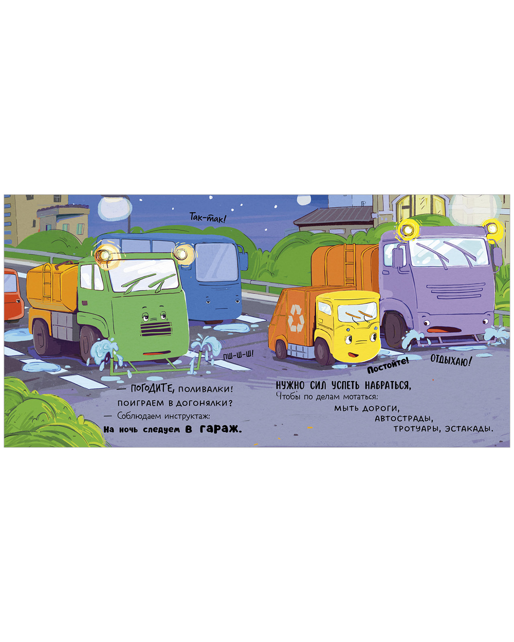 Как и всем детям, малышу мусоровозу очень не хочется ложиться спать. Он отчаянно ищет, с кем бы покататься по ночным улицам. Но все машины устали за день и спешат на стоянку или в депо. Как же быть мусоровозу? Может, желтая луна подскажет?