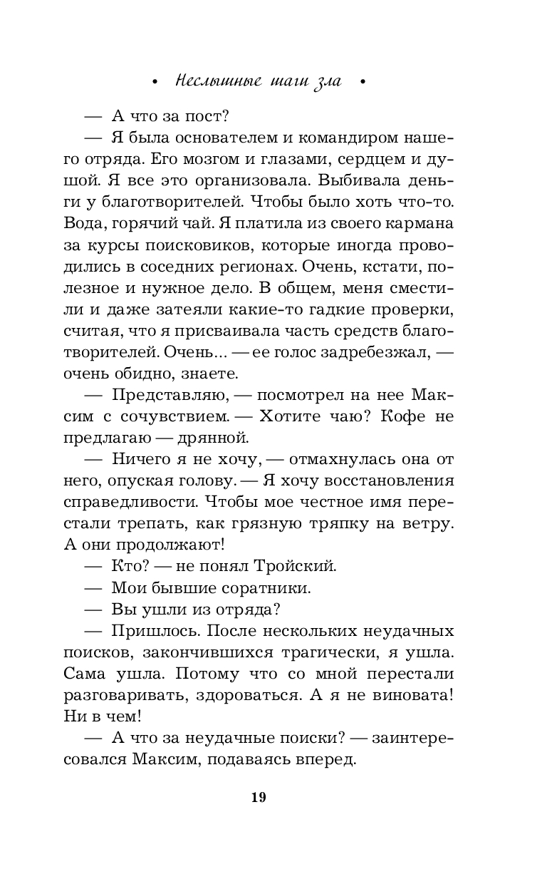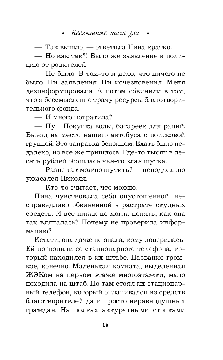 Когда-то Нина Новикова была душой и сердцем поисково-спасательного отряда, а теперь она затравленный изгой. Ее отчаянная мольба о справедливости находит отклик лишь в душе молодого журналиста Максима Тройского, решившего вопреки скепсису начальства распутать клубок лжи. Череда трагических смертей стариков, каждая из которых выдается за несчастный случай, и таинственные провалы в памяти Нины ведут его к шокирующему открытию: под маской благодетелей скрываются хладнокровные убийцы, превратившие помощь в преступный бизнес. Это гонка со временем, где один неверный шаг порой стоит жизни, а врагом может оказаться тот, кому доверяешь больше всего…