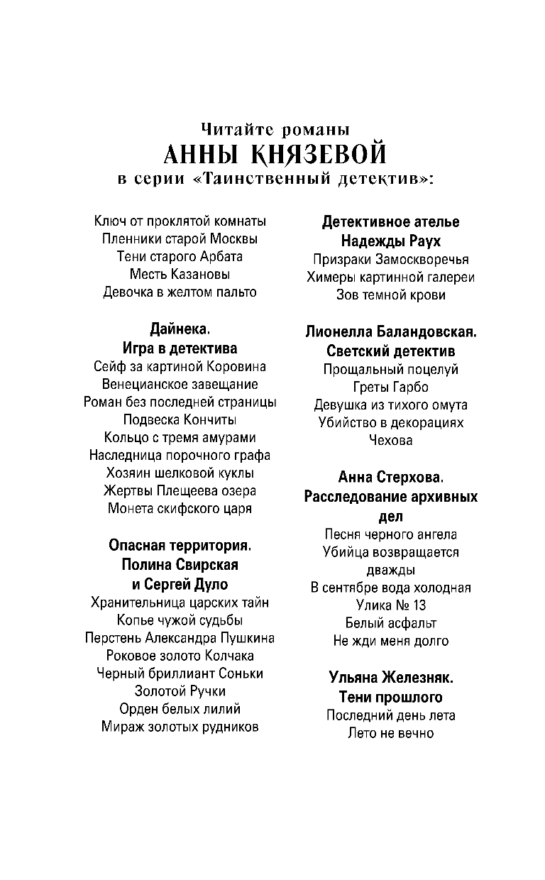 | Серия | Таинственный детектив Анны Князевой |
