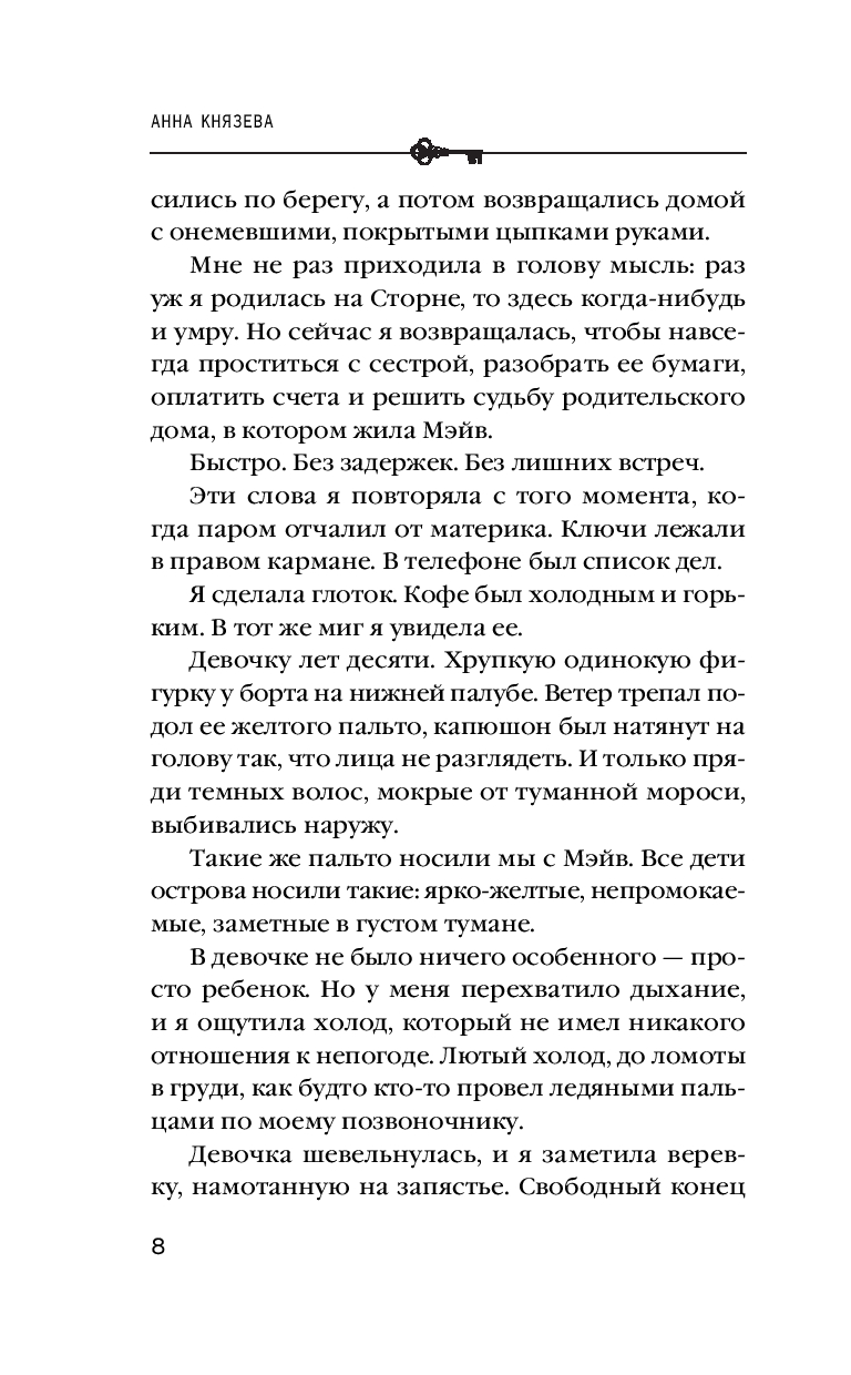 В туманах безмолвного острова Сторн, куда Финна Древер возвращается, чтобы похоронить сестру, прошлое оказывается не мертвым, а хищником, затаившимся в ожидании. Официальная версия гибели Мэйв – несчастный случай, но у Финны растет уверенность: это убийство. Каждый шаг в ее расследовании – это спуск в ледяную бездну островных тайн, где жестокие ритуалы, молчание и страх сплелись в тугой узел. Ей предстоит столкнуться не только с враждебностью замкнутого сообщества, но и с призраками собственного детства, а ключ к разгадке может стоить ей рассудка и жизни…
