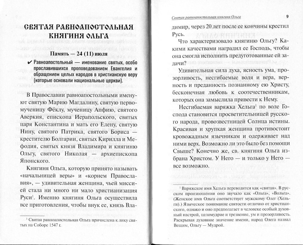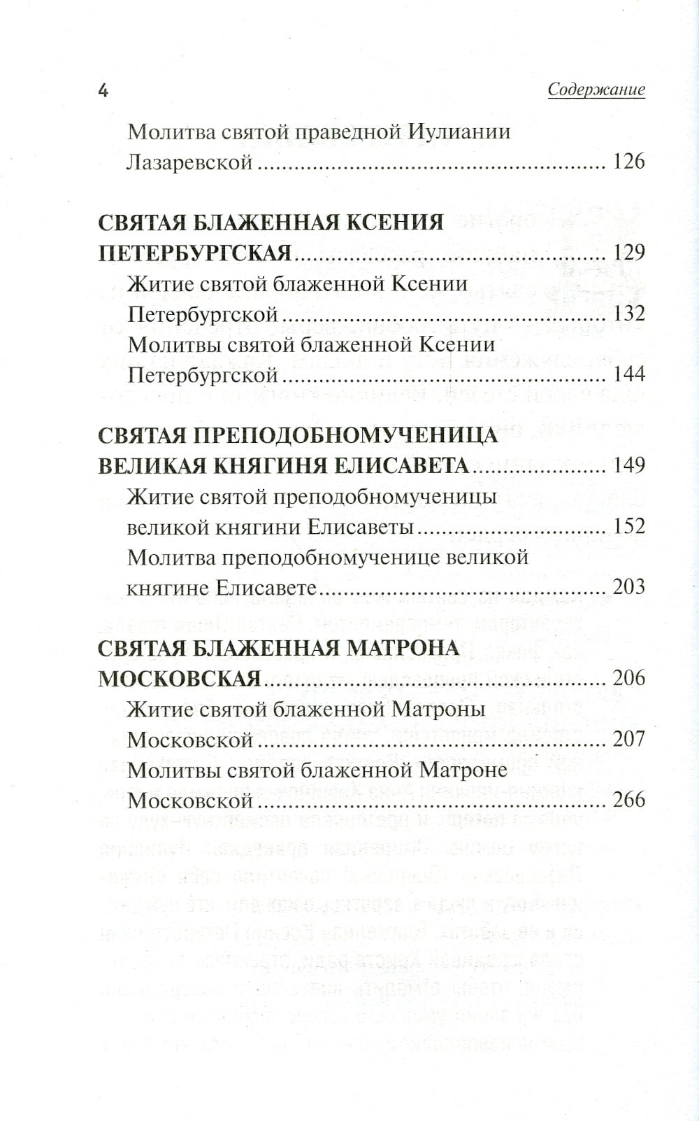 "Святые покровительницы женщин". В книге рассказывается о православных русских святых-женщинах, чья жизнь в семье и во Христе, милосердное служение, заботы о детях дают пример и подкрепление любой современной женщине. В книге жития, молитвы: святой равноапостольной Ольги, преподобной Евфросинии Полоцкой, святой благоверной княгини-инокини Анны Кашинской, святой праведной Иулиании Лазаревской, святой блаженной Ксении Петербургской, святой преподобномученицы Елисаветы Феодоровны, святой блаженной Матроны Московской.