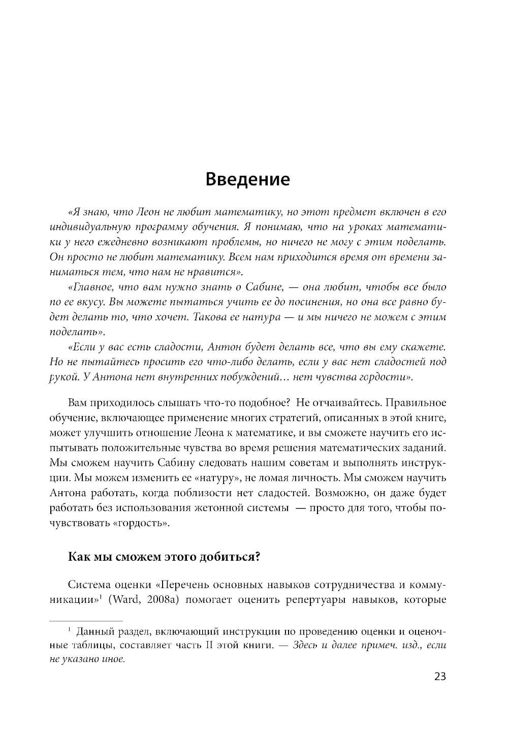 Опираясь на современные научные исследования в области прикладного анализа поведения (Applied Behavior Analysis, ABA) и свой многолетний практический опыт, Стив Уорд разработал подход для преодоления имеющихся дефицитов в освоении социальных навыков у детей с РАС. Предлагаемый подход включает описание 139 основных навыков сотрудничества и коммуникации, систему оценки уровня их развития у ребенка и подробные методические рекомендации по обучению этим навыкам. Работа с книгой поможет вам создавать индивидуальные программы, гибко адаптируя процедуры обучения под нужды конкретного ребенка, и добиваться прогресса в освоении им широкого спектра навыков, в том числе бытовых, игровых, речевых, социальных и академических.