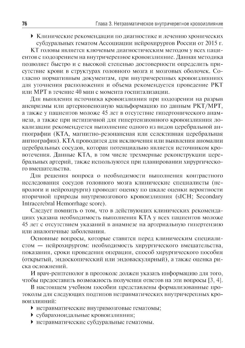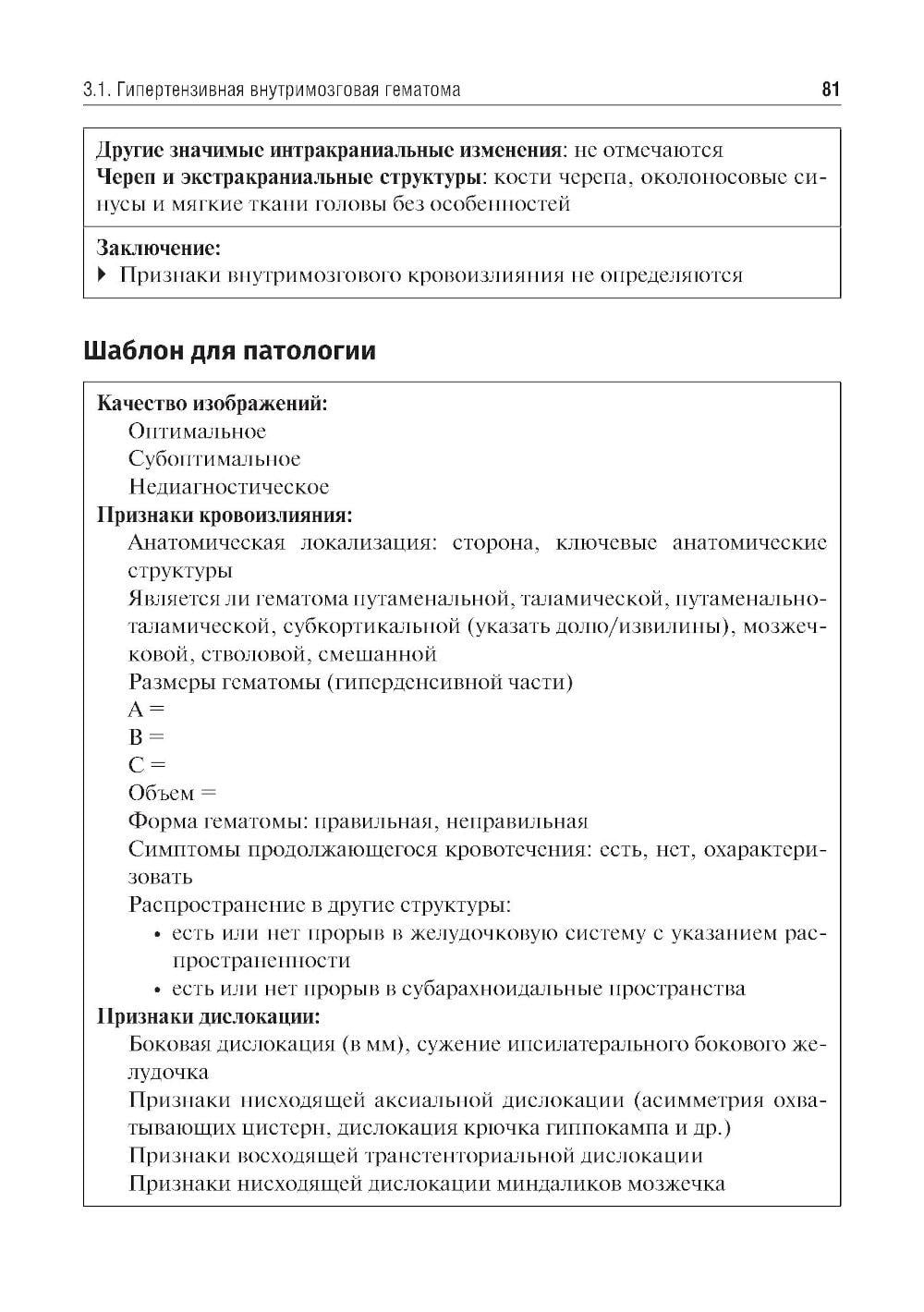 Учебное пособие составлено на основе действующих клинических рекомендаций. Представлены принципы формализованного подхода и формализованные шаблоны протоколов рентгеновской компьютерной томографии и магнитно-резонансной томографии при остром нарушении мозгового кровообращения и нетравматических внутричерепных кровоизлияниях.