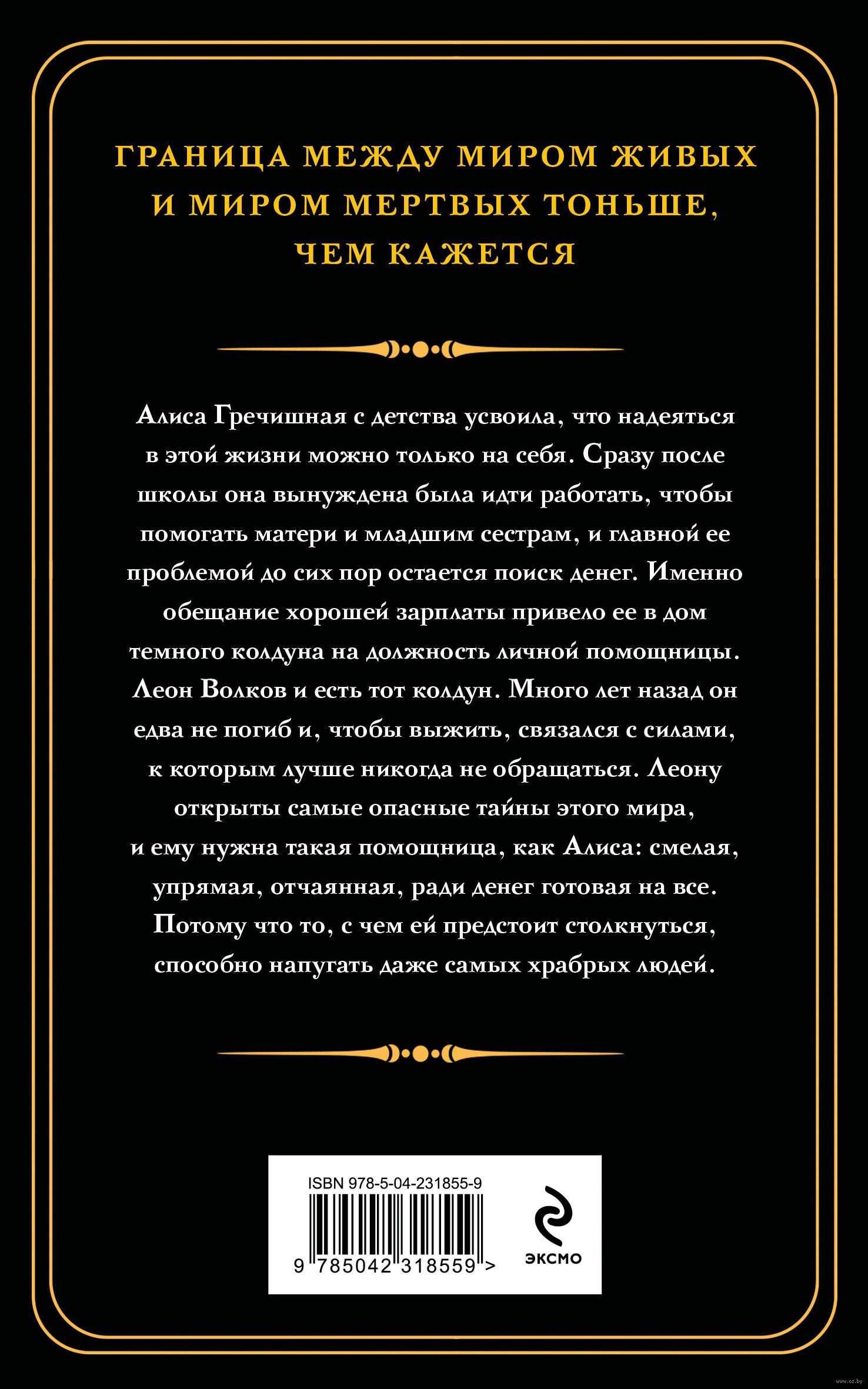 Леон Волков и есть тот колдун. Много лет назад он едва не погиб и, чтобы выжить, связался с силами, к которым лучше никогда не обращаться. Леону открыты самые опасные тайны этого мира, и ему нужна такая помощница, как Алиса: смелая, упрямая, отчаянная, ради денег готовая на все. Потому что то, с чем ей предстоит столкнуться, способно напугать даже самых храбрых людей.