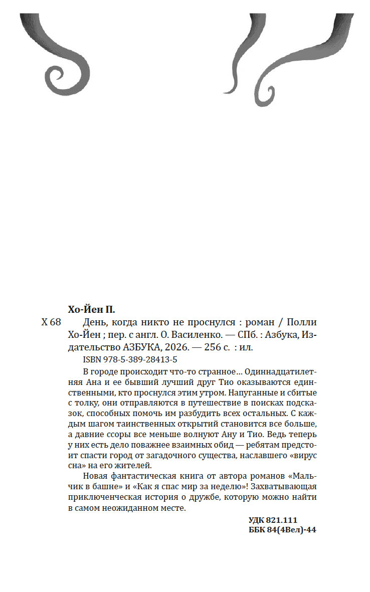 В городе происходит что-то странное… Одиннадцатилетняя Ана и ее бывший лучший друг Тио оказываются единственными, кто проснулся этим утром. Напуганные и сбитые с толку, они отправляются в путешествие в поисках подсказок, способных помочь им разбудить всех остальных. С каждым шагом таинственных открытий становится все больше, а давние ссоры все меньше волнуют Ану и Тио. Ведь теперь у них есть дело поважнее взаимных обид – ребятам предстоит спасти город от загадочного существа, наславшего "вирус сна" на его жителей.