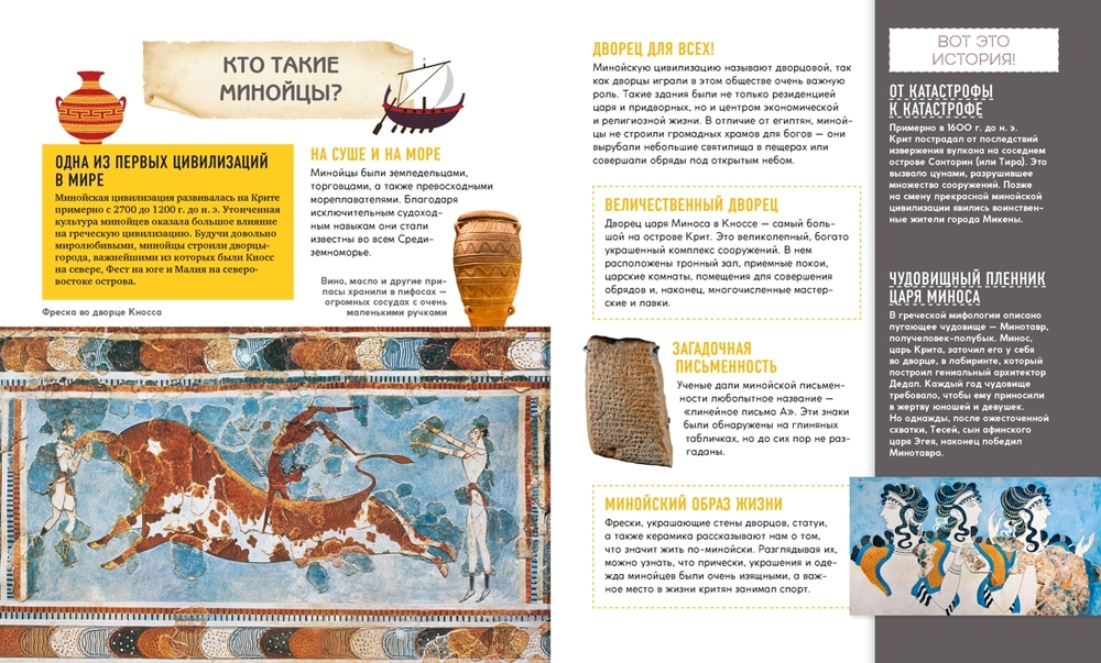 В энциклопедии представлены артефакты (тотемные столбы, глиняные таблички и скульптуры) из разных уголков мира, карты древних городов, а также архитектурные сооружения цивилизаций.