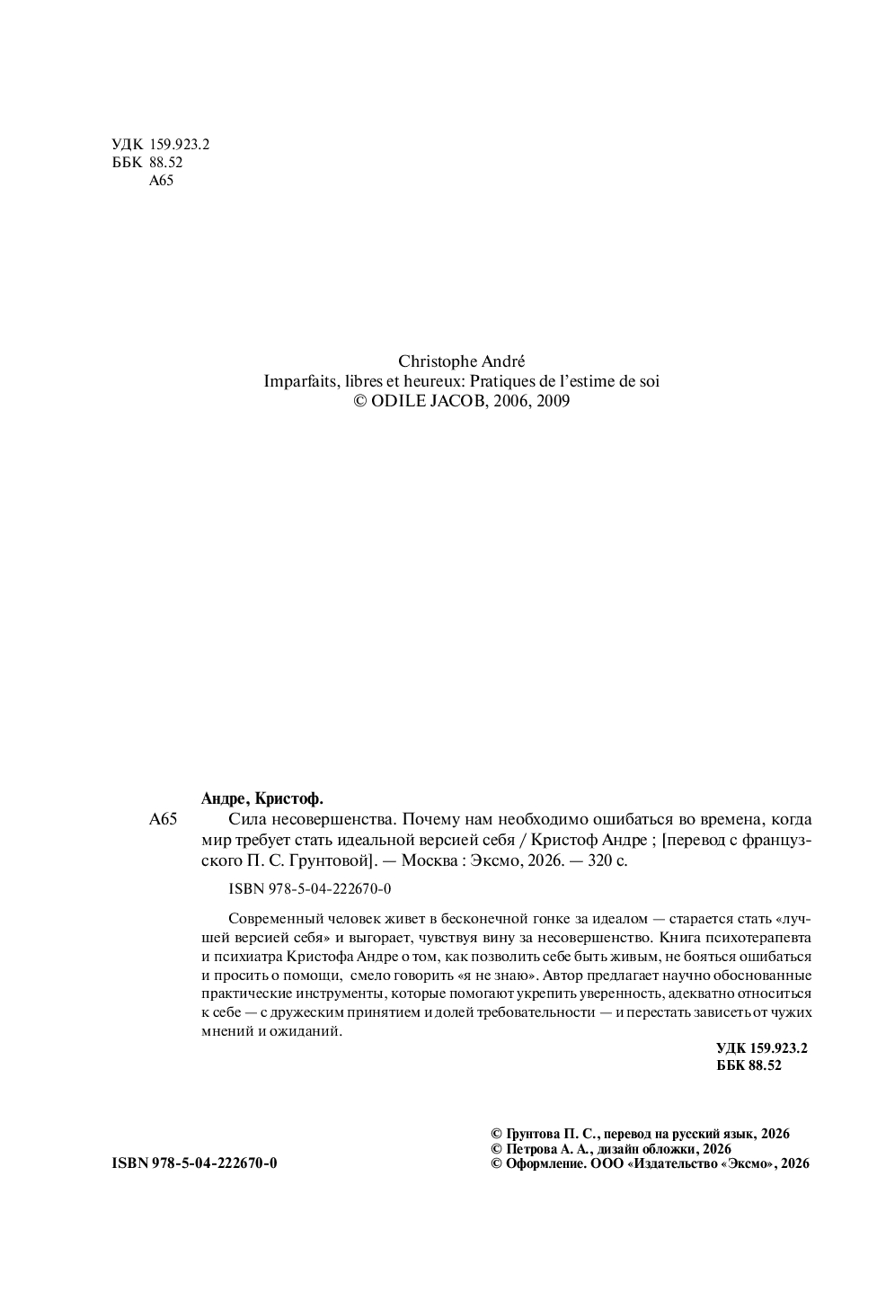 | Название в оригинале | Imparfaits, Libres Et Heureux: Pratiques De L'estime De Soi |