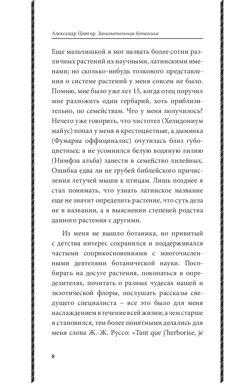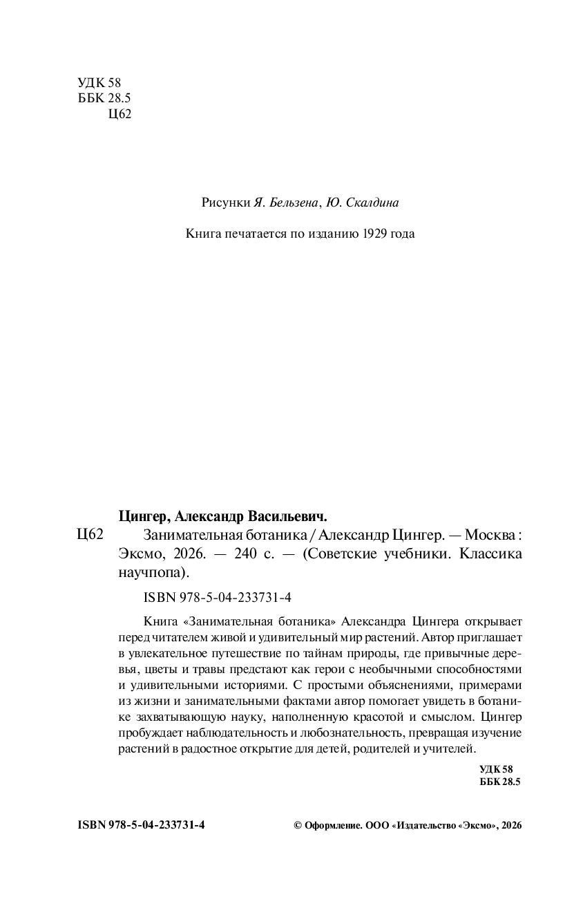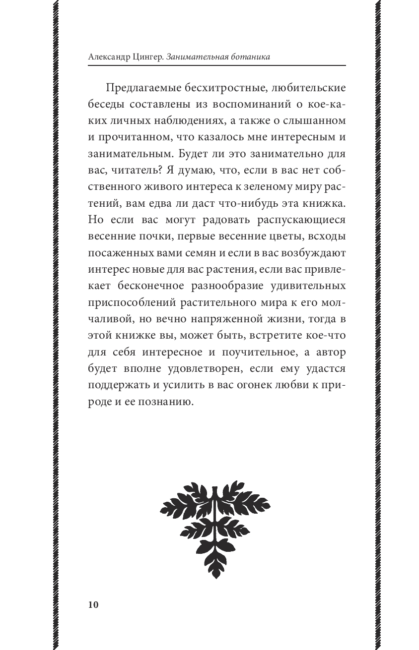 Эта книга – для всех, кто хочет увидеть в обычной травинке чудо природы. Цингер показывает, что ботаника – это не скучные термины, а живая наука, полная красоты, загадок и вдохновения. Вас ждут простые эксперименты, ясные объяснения и радость открытия – ведь растения умеют удивлять не меньше, чем химия или физика!