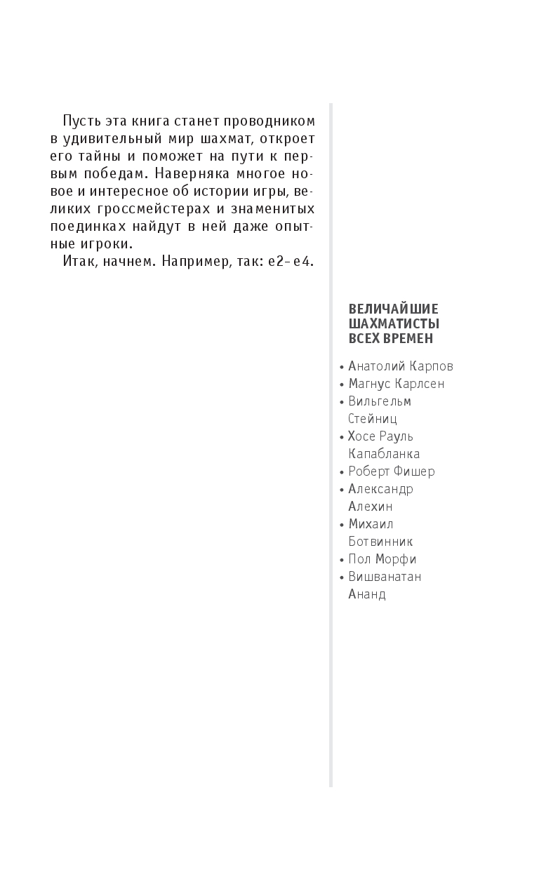 Шахматы – это игра, где важны стратегия, расчет и хладнокровие. Эта книга познакомит с историей шахмат, научит планировать ходы и выстраивать тактику. Вы разберетесь в шахматных терминах, научитесь анализировать ходы гроссмейстеров, узнаете, как сохранять спокойствие под давлением и как избегать типичных промахов, а ошибки соперника обращать в свою пользу. Практические задания помогут закрепить новые знания на собственном опыте.
