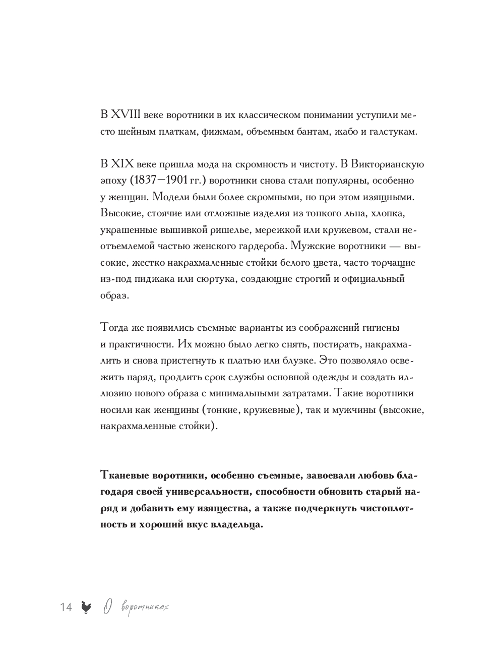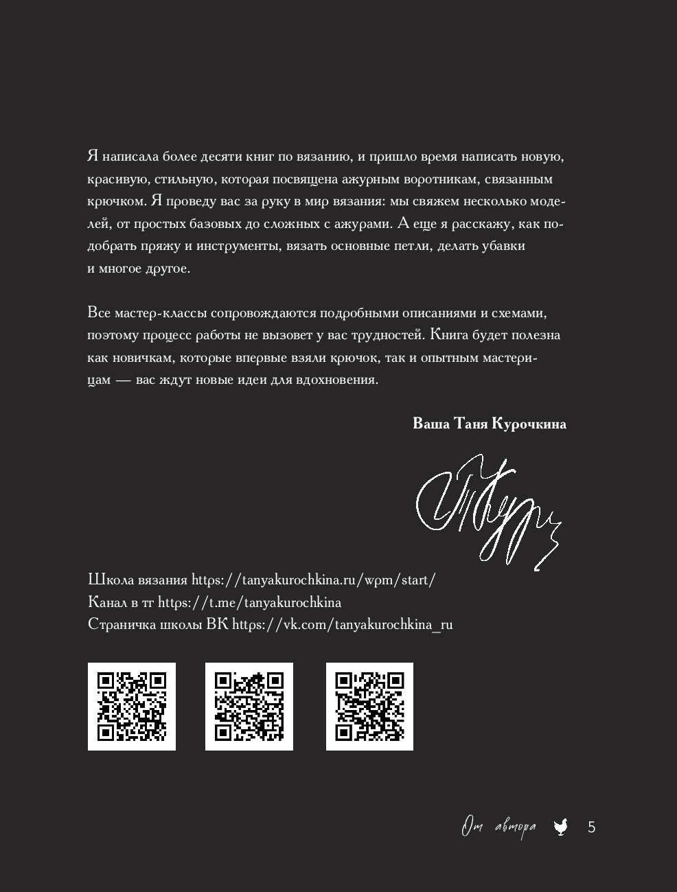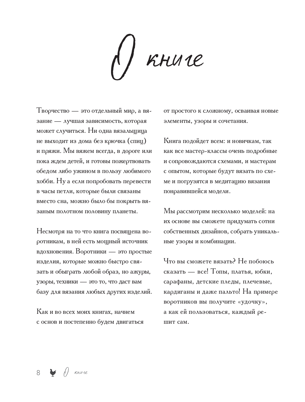 В издании представлены 10 красивых авторских моделей с подробными мастер-классами, схемы и справочные материалы, которые подойдут как новичкам, так и опытным вязальщицам. Осваивая вязание воротничков, вы получаете прочную базу для создания собственных дизайнов и возможность применять эти знания в самых разных проектах – от аксессуаров до одежды.