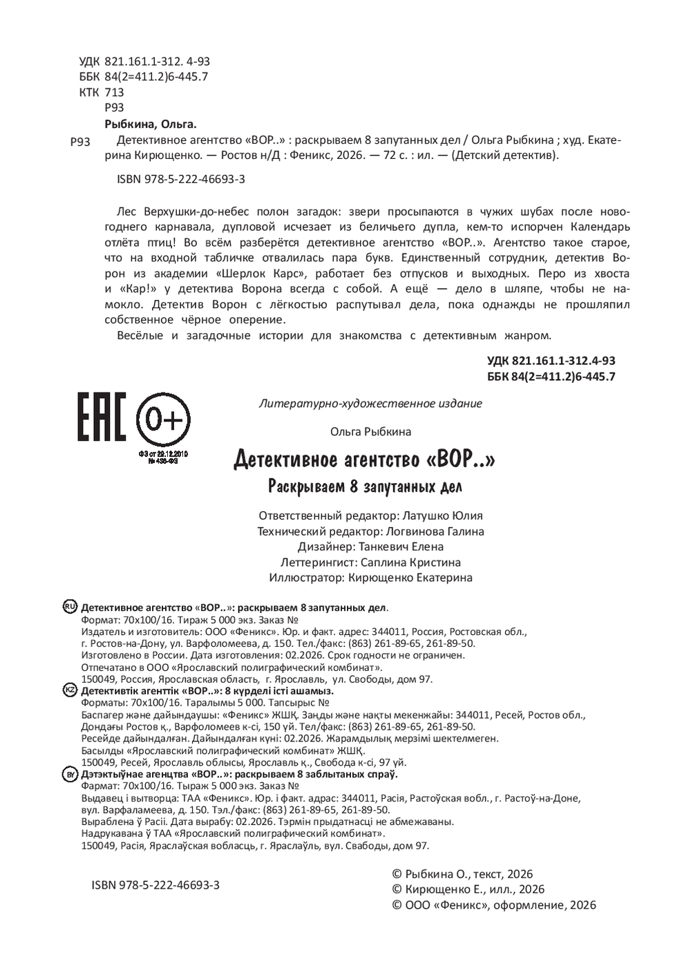 | Изготовитель | ЗАО "Издательство "Феникс". 190000, РФ, г. Санкт-Петербург, пер. Антоненко, 2 |