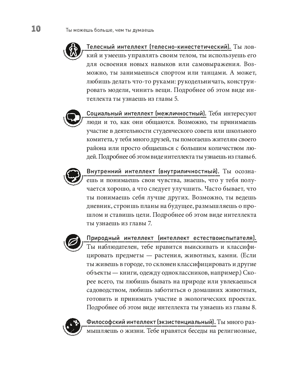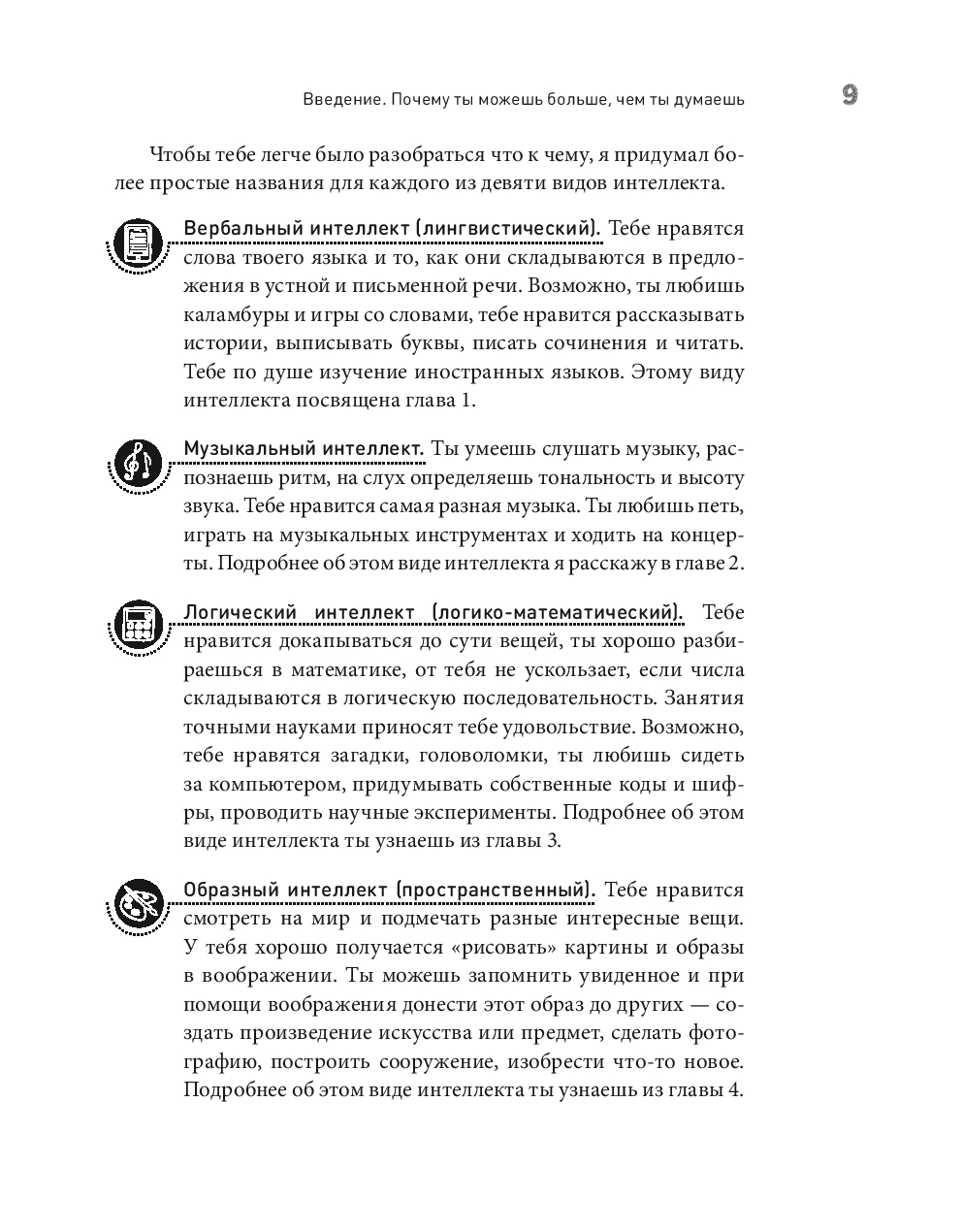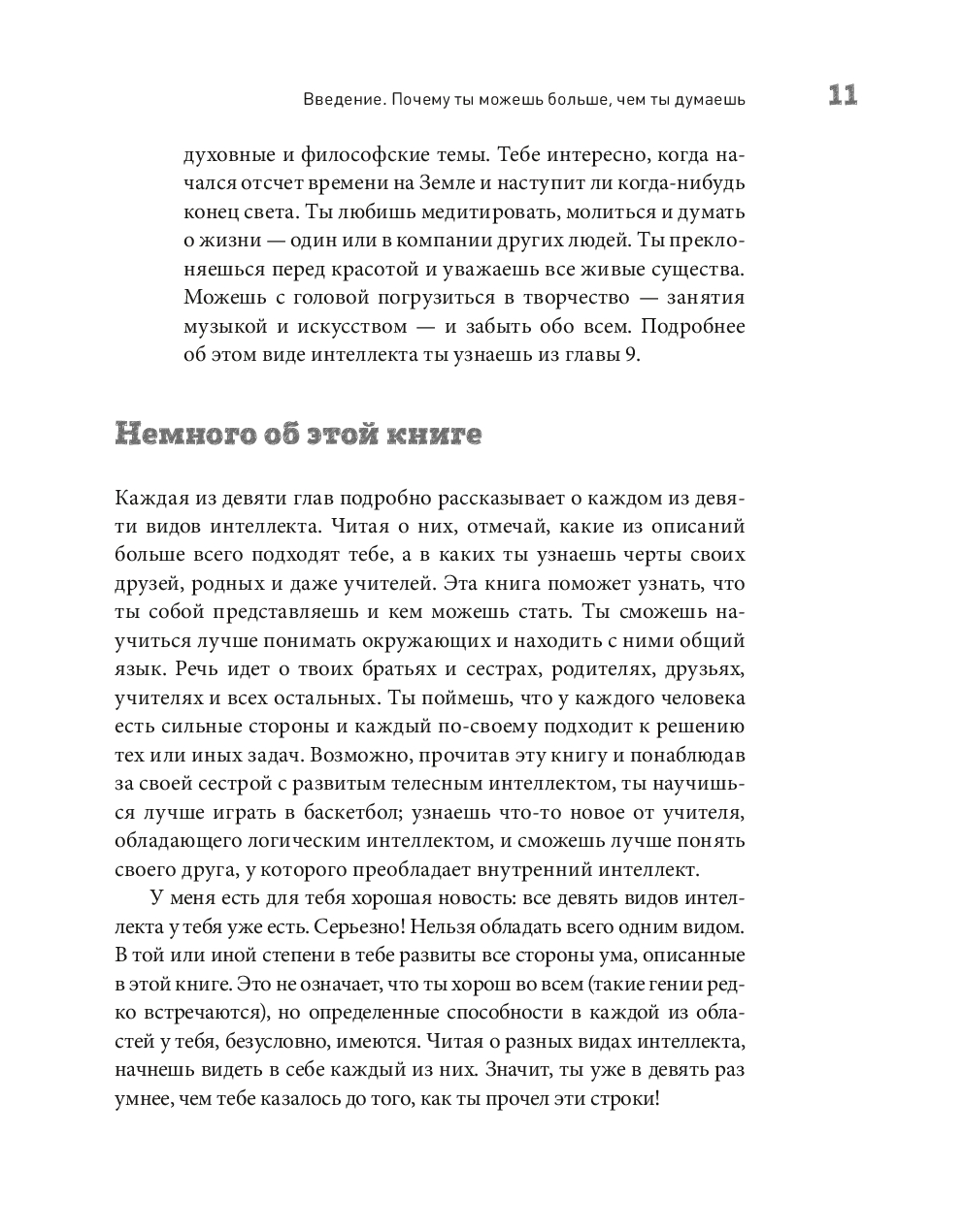 Принято считать, что умный человек – это тот, кто хорошо учится в школе. Но так ли это на самом деле? Интеллект – это не только отличные оценки, энциклопедические знания и хорошая память. Он проявляется во многом – в творчестве, музыке, спорте, эмоциях, умении видеть красоту природы и находить общий язык с окружающими.