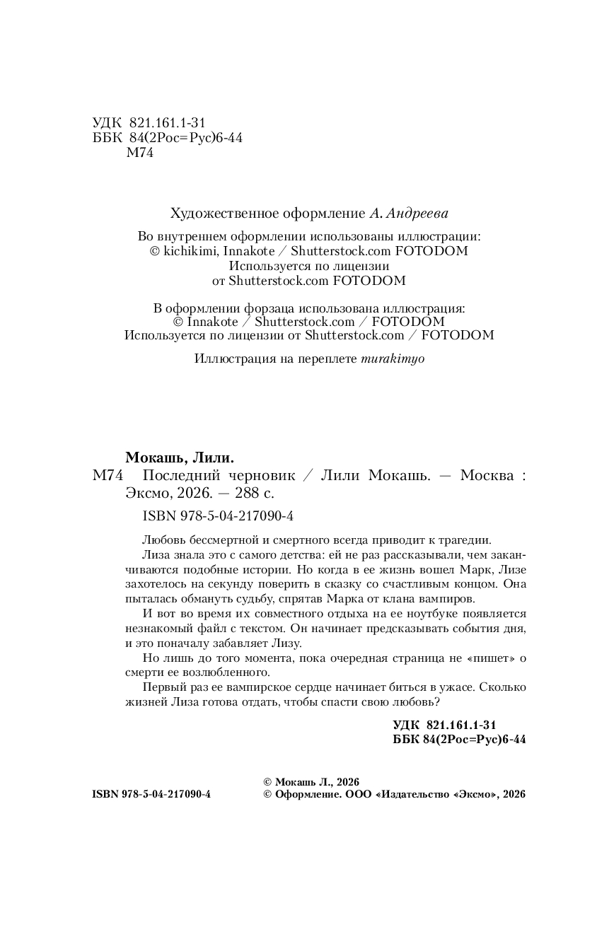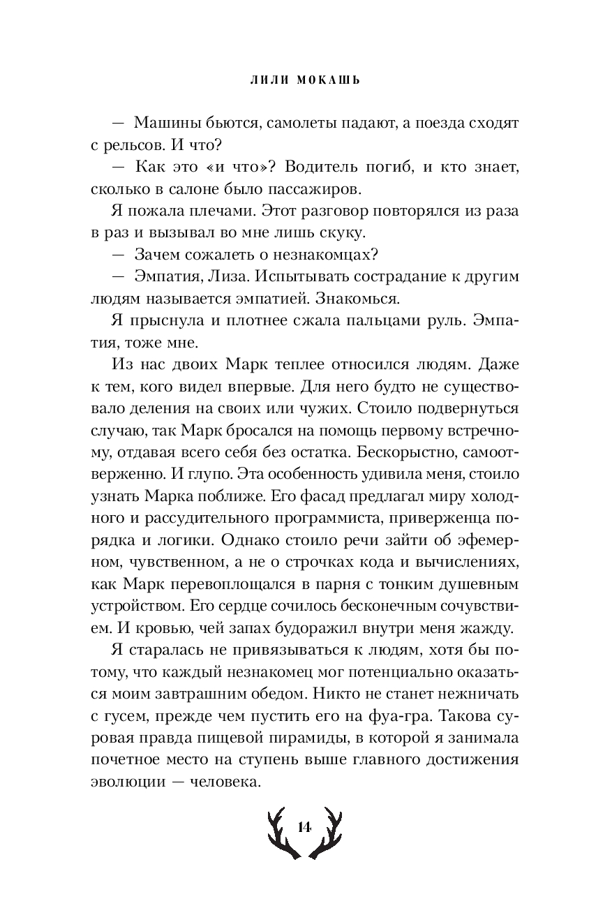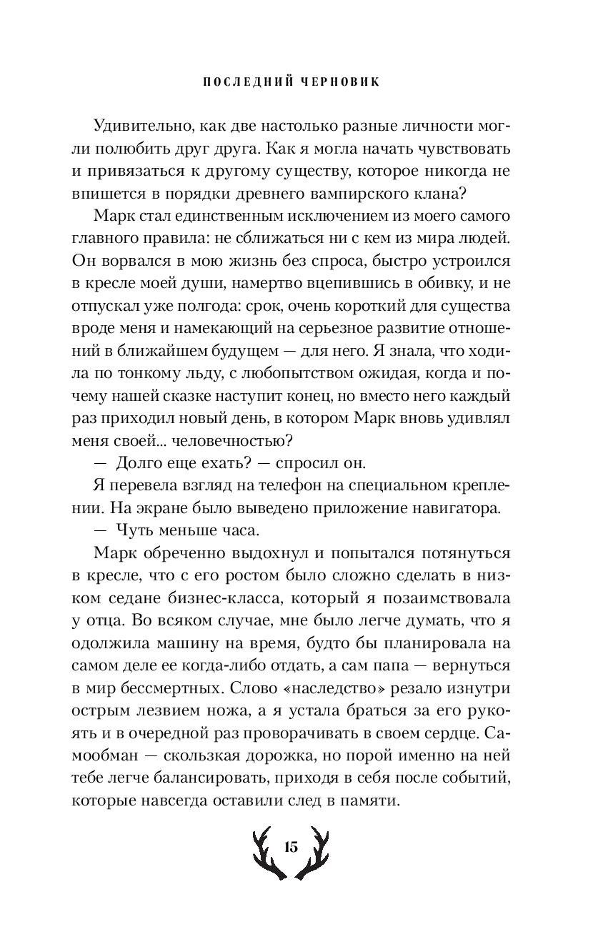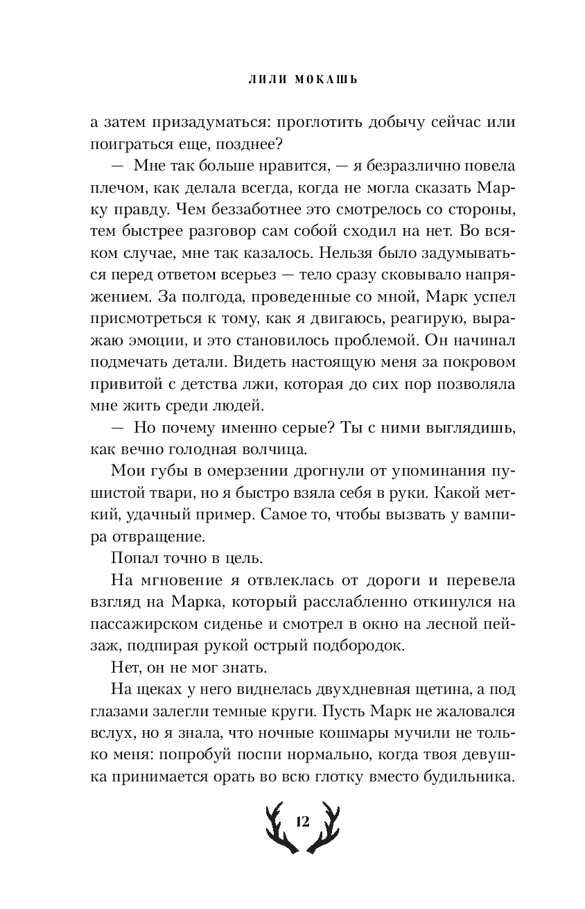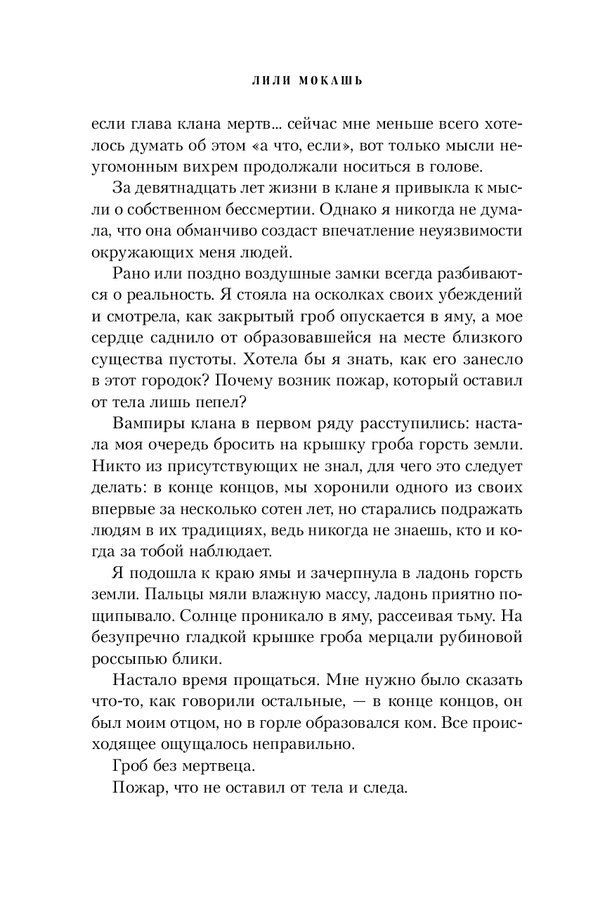 Лиза знала это с самого детства: ей не раз рассказывали, чем заканчиваются подобные истории. Но когда в ее жизнь вошел Марк, Лизе захотелось на секунду поверить в сказку со счастливым концом. Она пыталась обмануть судьбу, спрятав Марка от клана вампиров.