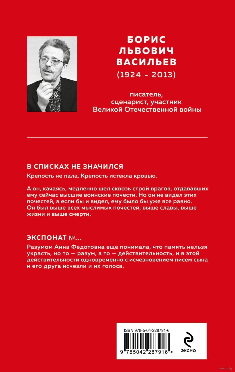 Борис Львович Васильев (1924-2013) – известный советский писатель и драматург, уроженец Смоленска, ушедший добровольцем на фронт во время Великой Отечественной войны.