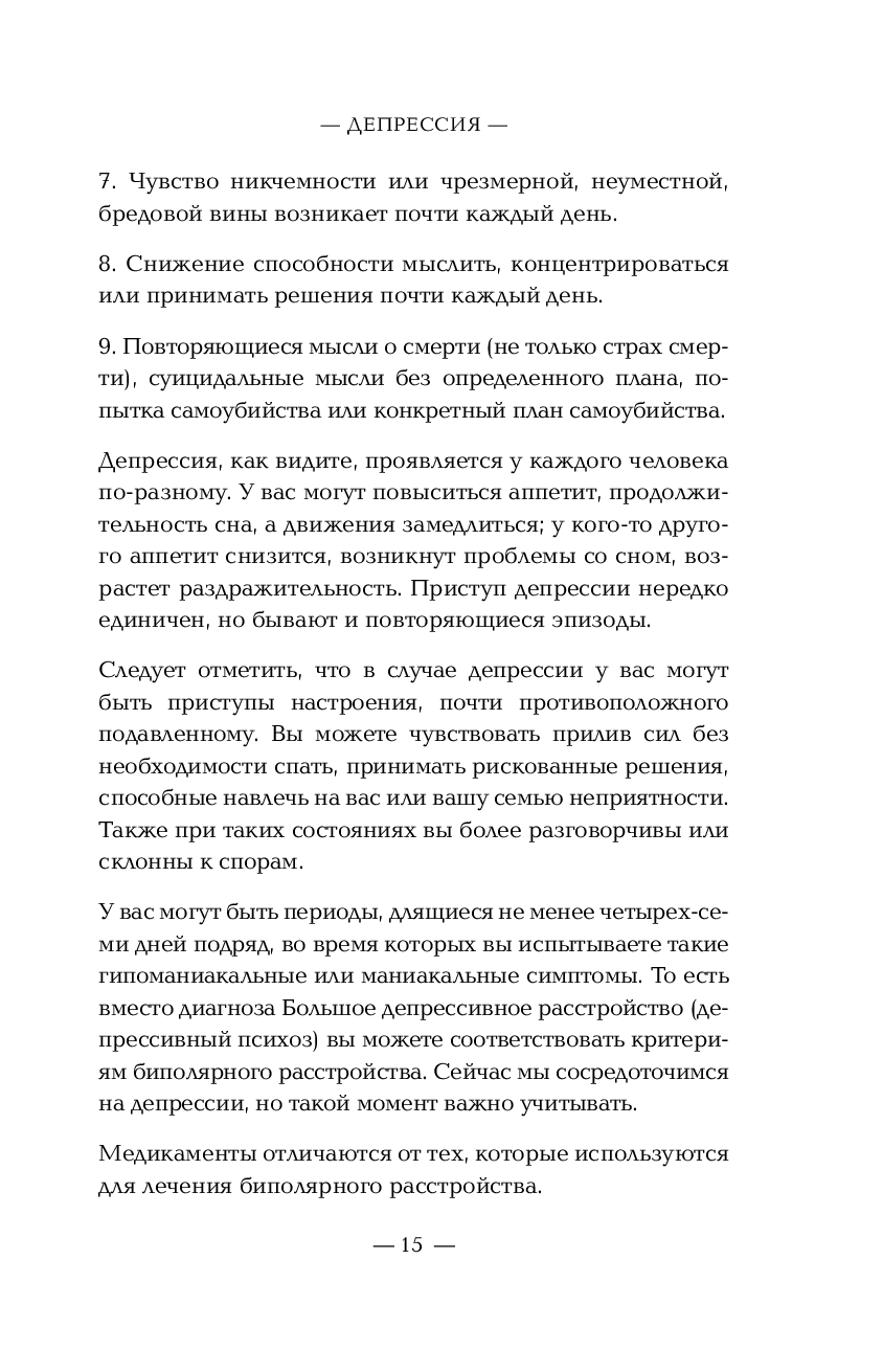 Эта книга – исчерпывающее пособие для всех, кто устал от постоянных эмоциональных горок и хочет обрести стабильное психическое здоровье. В книге подробно рассматриваются различные психологические проблемы от хронической депрессии до сдвг и птср, и приводятся конкретные рекомендации по их лечению, включая самопомощь, медикаментозное лечение, психотерапию. Авторы делятся практическими методами для каждого вашего таракана в голове: от простых домашних техник до рекомендаций по общению с близкими и специалистами.