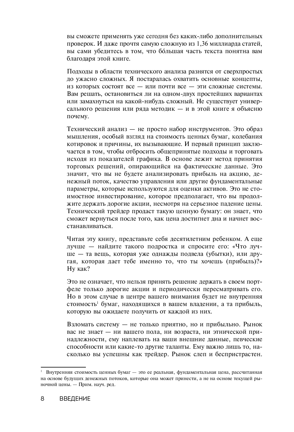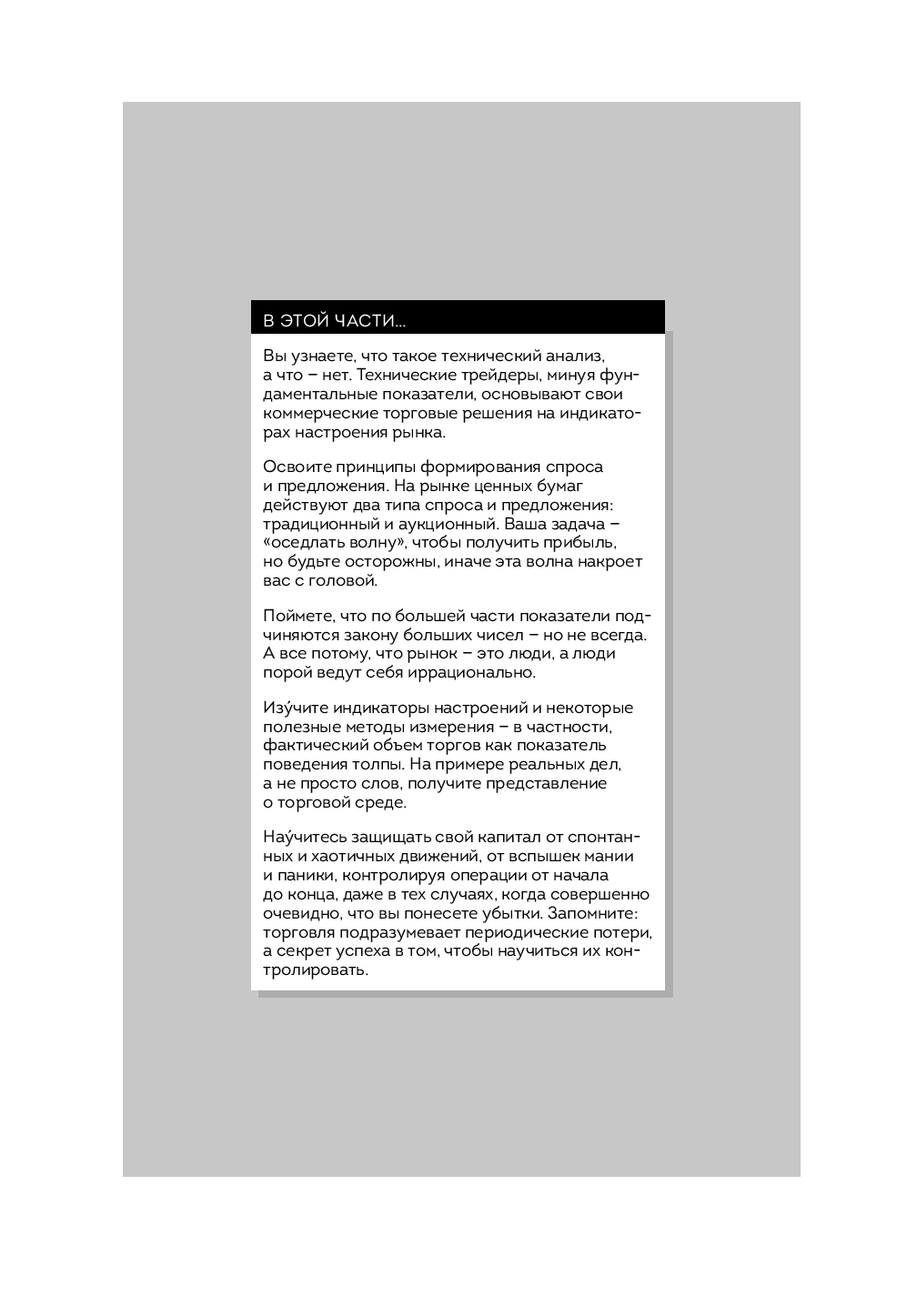 Основные принципы технического анализа позволяют опытным трейдерам интерпретировать реальную рыночную информацию, чтобы максимизировать доходность инвестиций. В этой книге профессионал рынка показывает, как использовать эти принципы, не полагаясь исключительно на мнения экспертов. С ее помощью вы освоите основы теханализа, откроете для себя полезные формулы, изучите современные теории рыночных трендов и отточите навыки распознавания ключевых индикаторов. Учитесь с удовольствием!