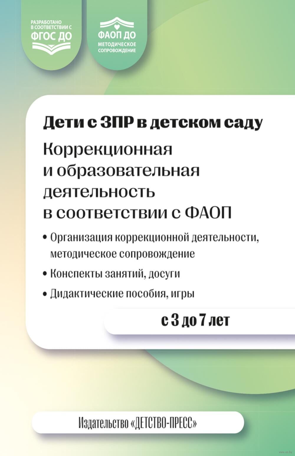 Дети с ЗПР в детском саду. Коррекционная и образовательная деятельность в соответствии с ФАОП