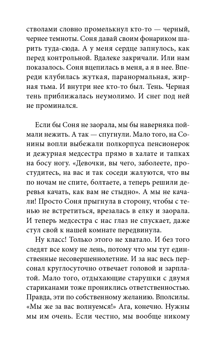 Каникулы в санатории – это скучно, а если тебе тринадцать – невыносимо! Так думали Лиза и Соня, пока не обнаружили след. Точнее, цепочку следов одной единственной ноги. Как такое возможно? Неужели в санатории бродит призрак? Или это монстр из леса? Девочки начинают собственное расследование – строят версии, собирают улики и шаг за шагом приближаются к разгадке, которая все это время была совсем рядом…Приготовьтесь: это будет смешно и страшно, но главное – совсем не скучно!