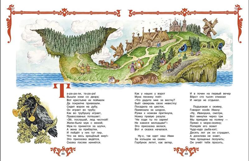 Популярная детская сказка "Конек-Горбунок", написанная писателем П. П. Ершовым, представляет собой очень яркую и красивую стихотворную поэму. Сказка насыщена волшебными героями: Жар-птица, огромная рыба-кит и другие. Стиль этой чудесной сказки – иронично-сатирический, она высмеивает тех, кто богат или мечтает разбогатеть, за чужой счет. Их страсти и желания настолько велики, что в итоге отрицательные герои остаются ни с чем. А вот Иван, который был честным и щедрым, не надеясь ни на какие похвалы и тем более на вознаграждение, без лукавства и притворства был всегда готов ради счастья другого человека пожертвовать своею жизнью. Именно поэтому у него появляется такой мудрый друг, как волшебный Конек-Горбунок.