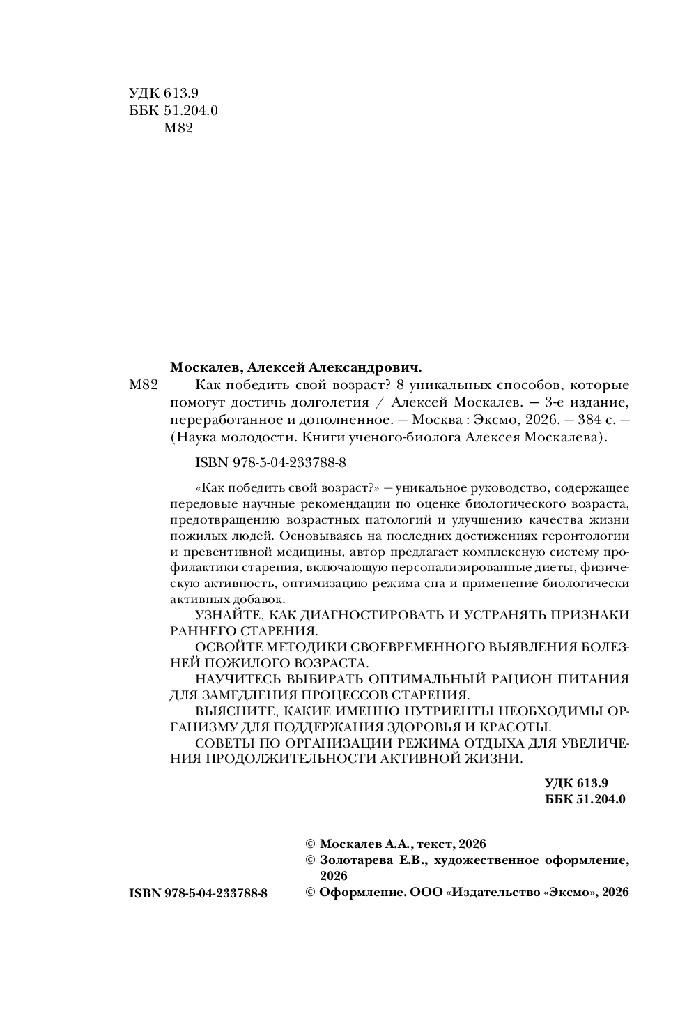 | Серия | Наука молодости. Книги ученого-биолога Алексея Москалева |