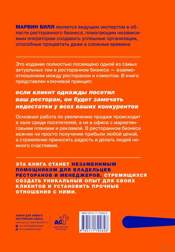 Это издание полностью посвящено одной из самых актуальных тем в ресторанном бизнесе – взаимоотношениям между рестораном и клиентом. В книге представлен ключевой принцип: