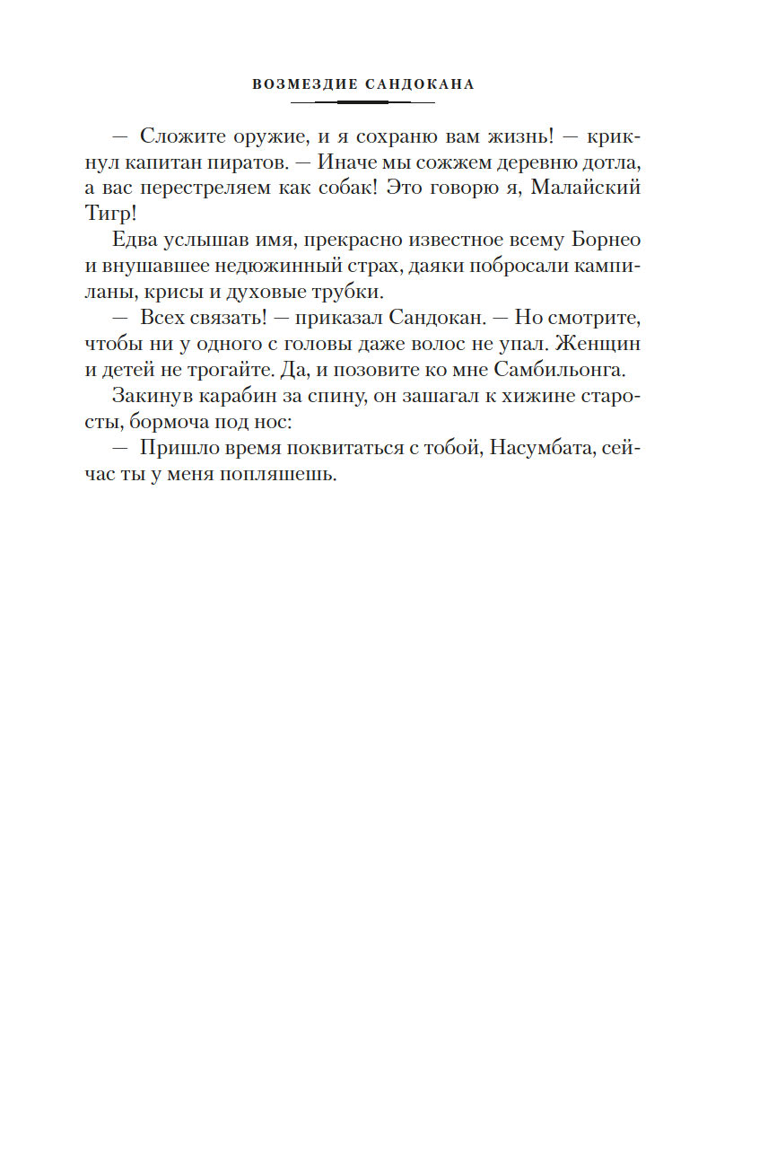 Сандокан вместе со своими верными друзьями готовится отомстить смертельному врагу, уничтожившему его семью, а также вырвать из цепких лап англичан родной остров Момпрачем. Эти произведения легли в основу популярного сериала "Сандокан, принц пиратов", вышедшего на экраны в 2025 году. Тексты сопровождаются полным комплектом иллюстраций знаменитых итальянских художников Дженнаро Д’Амато и Альберто делла Валле.