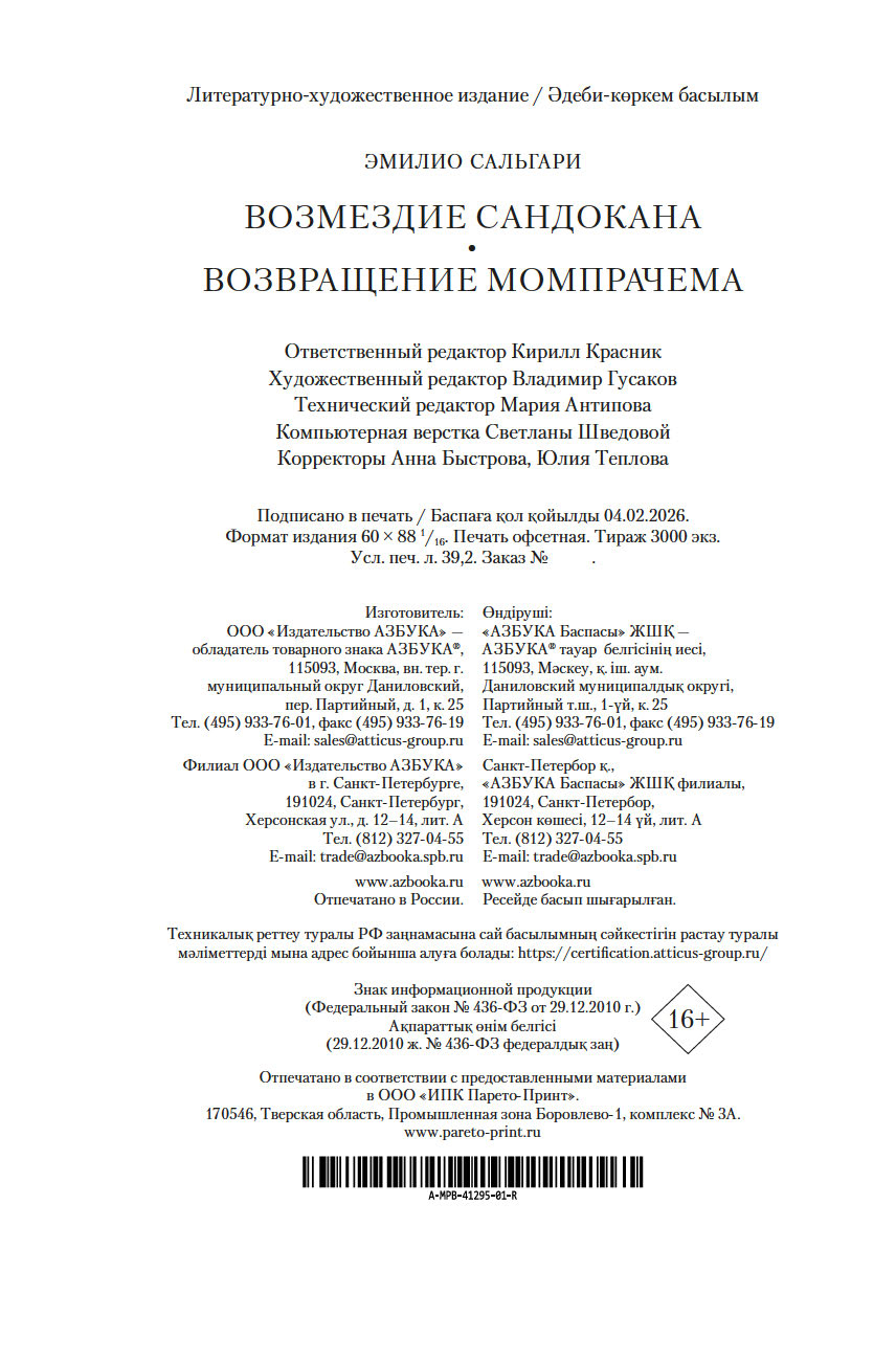 В настоящее издание вошли два романа: "Возмездие Сандокана" и "Возвращение Момпрачема".