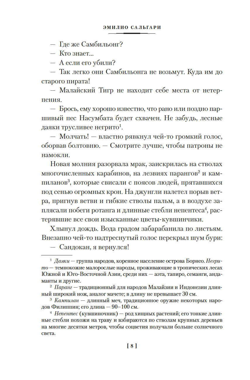 Эмилио Сальгари (1862-1911) – прославленный писатель, которого современники называли "итальянским Жюлем Верном", создавший около двухсот романов и рассказов. Среди этих многочисленных произведений, сверкающих яркой фантазией и захватывающими сюжетами, наибольшую популярность завоевали два пиратских цикла: "Антильские пираты", о приключениях Черного Корсара и его верных последователей, а также серия романов под общим названием "Пираты Малайзии", о благородном разбойнике Сандокане.