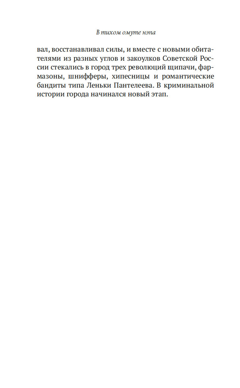 Книга известного историка и публициста Анджея Иконникова-Галицкого является продолжением его авторского цикла о криминальной жизни бывшей столицы Российской империи и на этот раз посвящена периоду нэпа. В ней рассказывается о суровом противостоянии Угрозыска и милиции уголовному миру нэповского Петрограда-Ленинграда. Среди персонажей книги есть такие знаменитости, как, например, король бандитов Ленька Пантелеев и родоначальник петербургской школы научно-криминалистической экспертизы новой эпохи Алексей Андреевич Сальков. Ряд глав специально посвящен различным видам преступлений: бандитизму, убийствам, мошенничеству, воровству, разбою, проституции, хулиганству и др., а также работе сотрудников правоохранительной системы: судов, отделений милиции, исправительно-трудовых учреждений. Книга написана на основании газетно-журнальной судебной и милицейской хроники и научных исследований. Издание снабжено вклейкой с иллюстрациями.