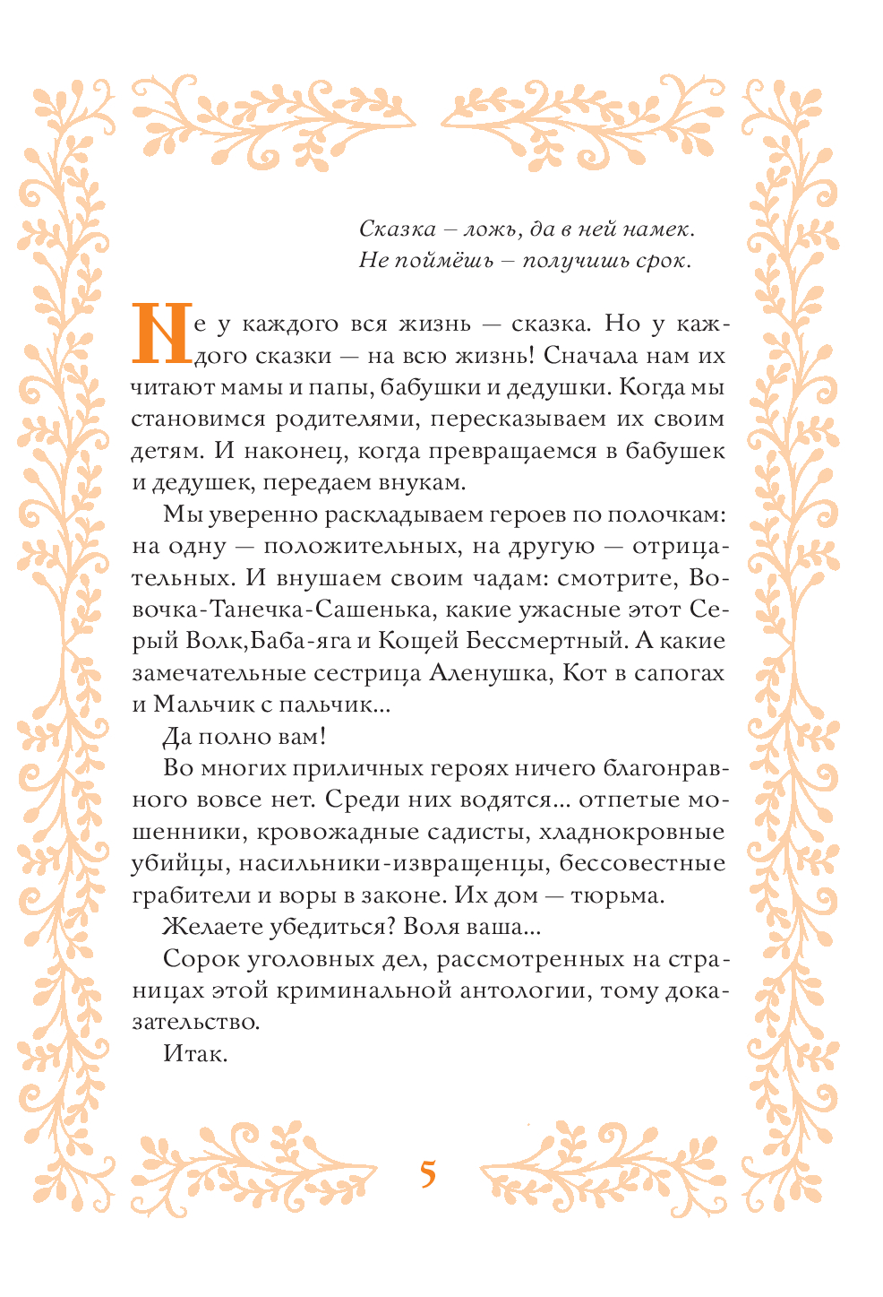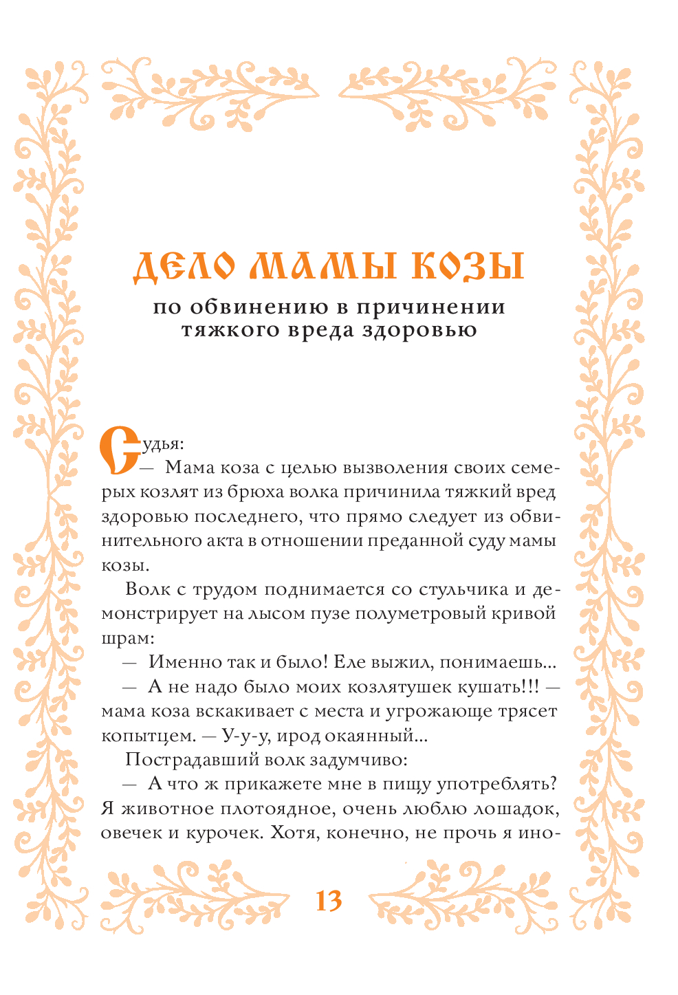 Книга известного журналиста и телерадиоведущего Виктора Травина – это первое в отечественной литературе произведение, в котором герои известных народных сказок – Аленушка, мама–коза, Емеля-дурачок, Морозко и прочие – предстают перед судом за убийства, грабежи, насилие, мошенничество, вымогательство и кражи…