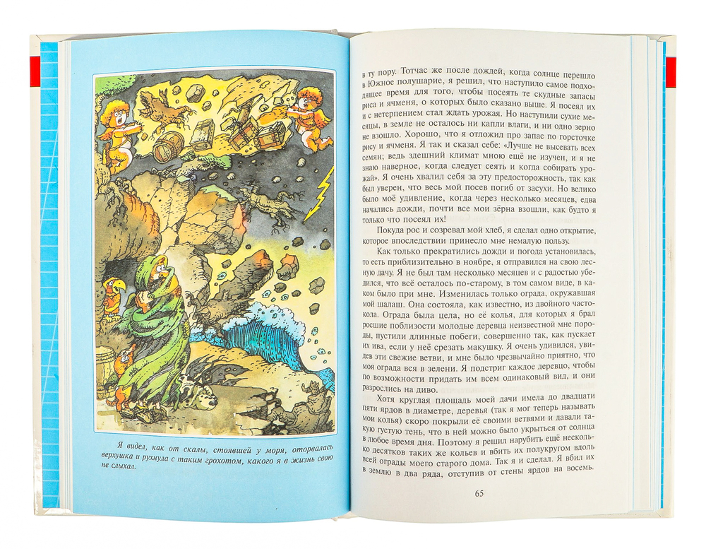 Скоро будет 300 лет, как история путешественника, попавшего на необитаемый остров, увлекает умы и сердца молодых людей всего мира. Прекрасный пересказ К.И.Чуковского проиллюстрировал замечательный и очень стильный художник, большой выдумщик Р.Ф.Сахалтуев.