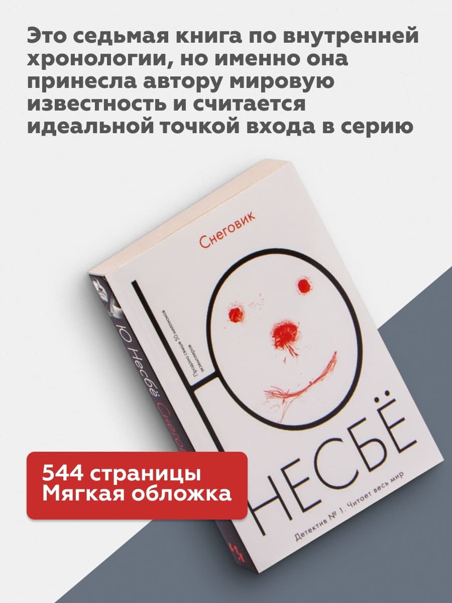 Уже несколько лет в тот день, когда выпадает первый снег, в Норвегии бесследно исчезают замужние женщины. Невинная детская игра в снеговика оборачивается кошмаром, а для Харри Холе погоня за серийным убийцей становится охотой на тень. Преступник будто дразнит старшего инспектора, обретая всё новые и новые обличья...