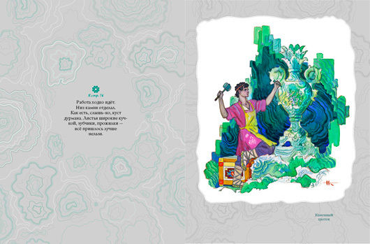 Издательство посчитало возможным соединить талантливые открыточные иллюстрации Н. Кочергина с талантливыми текстами П. Бажова.