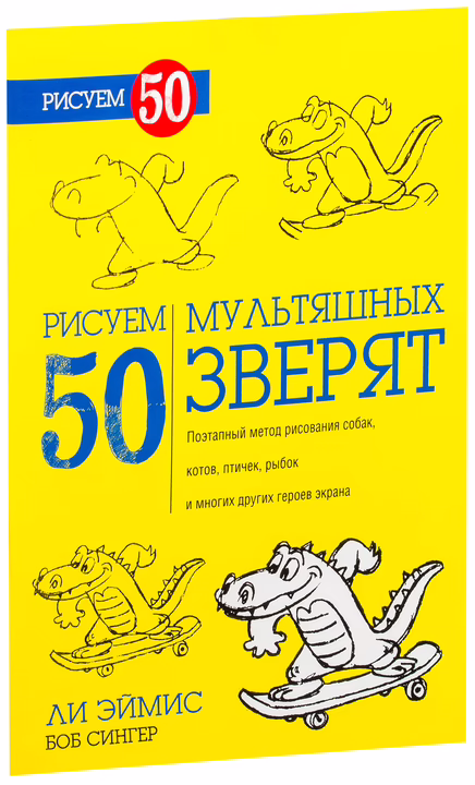 Хотите убедиться, как легко рисовать, следуя методу "шаг за шагом"? Иллюстратор Ли Эймис предлагает вам попробовать изобразить 50 самых любимых мультяшных зверей: аллигатора на скейтборде, отчаянную акробатку обезьянку, тюленя-фокусника, котёнка, слониху и многих других забавных персонажей.