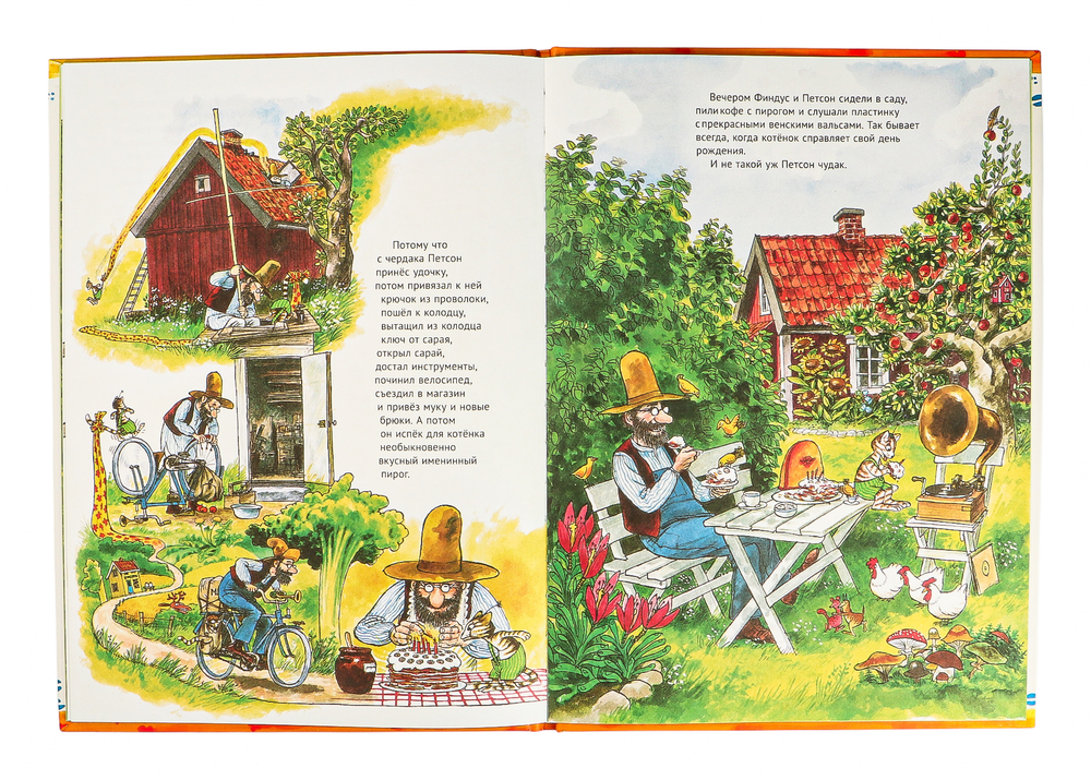 В этой книге рассказывается о том, как Петсон пек пирог Финдусу, который празднует день рождения три раза в год.