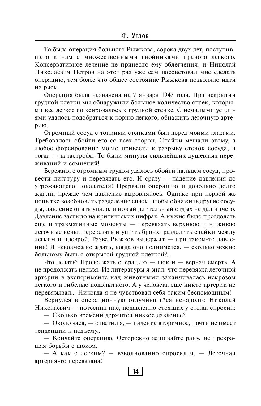 Перед вами уникальное издание – лучший медицинский роман XX века, написанные задолго до появления интереса к медицинским сериалам и книгам. Это реальный дневник хирурга, в котором правда все – от первого до последнего слова. Повествование начинается с блокадного Ленинграда, где Федор Углов и начал работать в больнице.