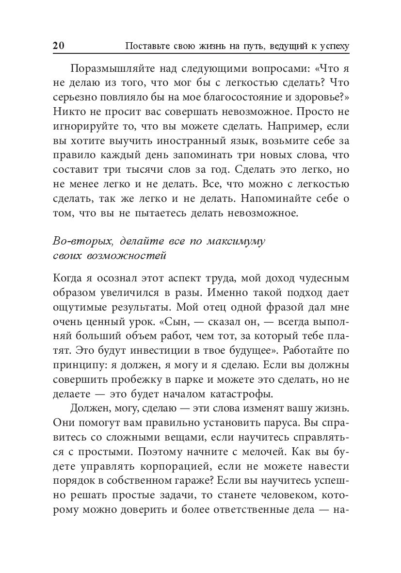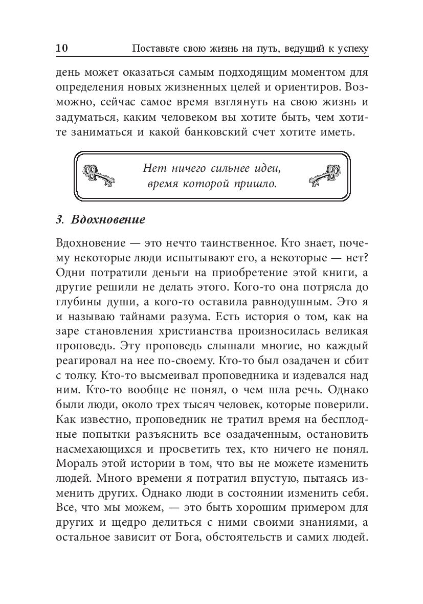 В этой книге вы найдёте главные ключи к успешной жизни. Она поможет вам почувствовать силу слова и мысли, научиться справляться с трудностями, добиться успеха в бизнесе и карьере, правильно ставить перед собой цели и достигать их.