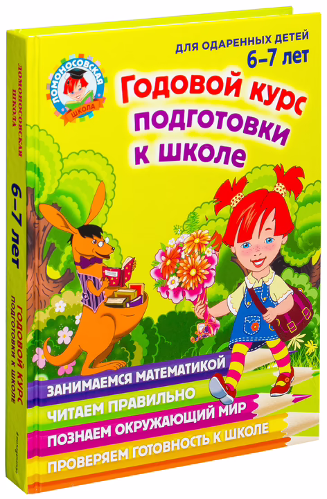 Книга включает в себя полный годовой курс подготовки к школе по математике, чтению, развитию моторики руки, окружающему миру. Также она поможет проверить готовность ребенка к школе.