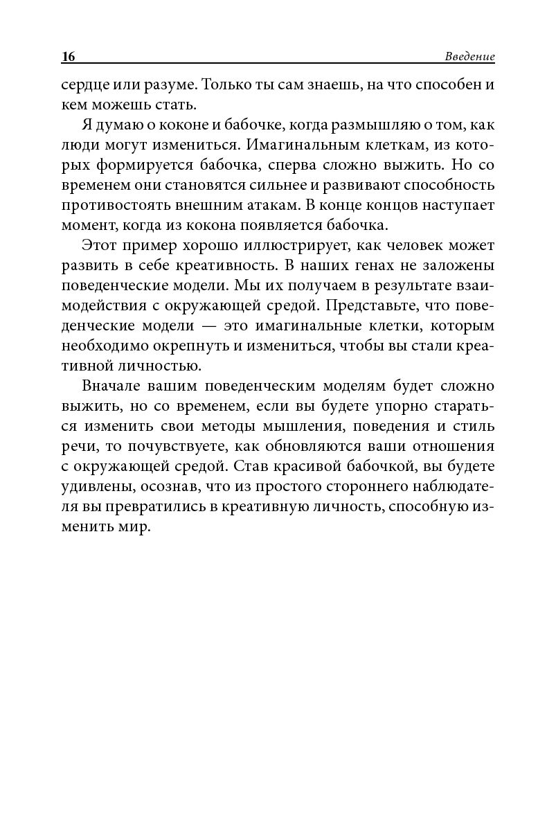 Майкл Микалко, известный во всём мире эксперт по креативности, утверждает, что в какой бы области мы ни прилагали усилия – в бизнесе, науке, искусстве или просто в повседневной жизни, – наши врождённые творческие способности ограничены предрассудками логики и общепринятых стереотипов. Благодаря подробным упражнениям, стратегиям и приёмам из этой книги вы узнаете, как соединять несовместимое, как мыслить парадоксально и как завербовать себе в помощники силу собственного подсознания.