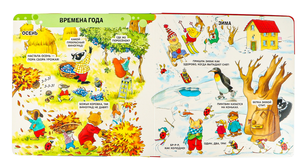 Благодаря добрым и красочным иллюстрациям знаменитого художника Тони Вульфа дети расширяют словарный запас и с интересом узнают новое: изучают животных и мир вокруг, учатся определять цвета и формы, различать времена года, дни недели, а также считают до 10.