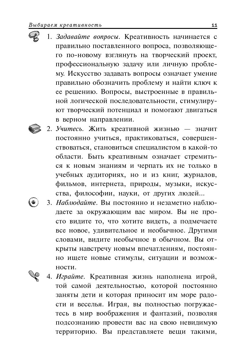 Книга предлагает множество самых разнообразных идей и стратегий, доступных каждому, кто хочет стать более креативным.