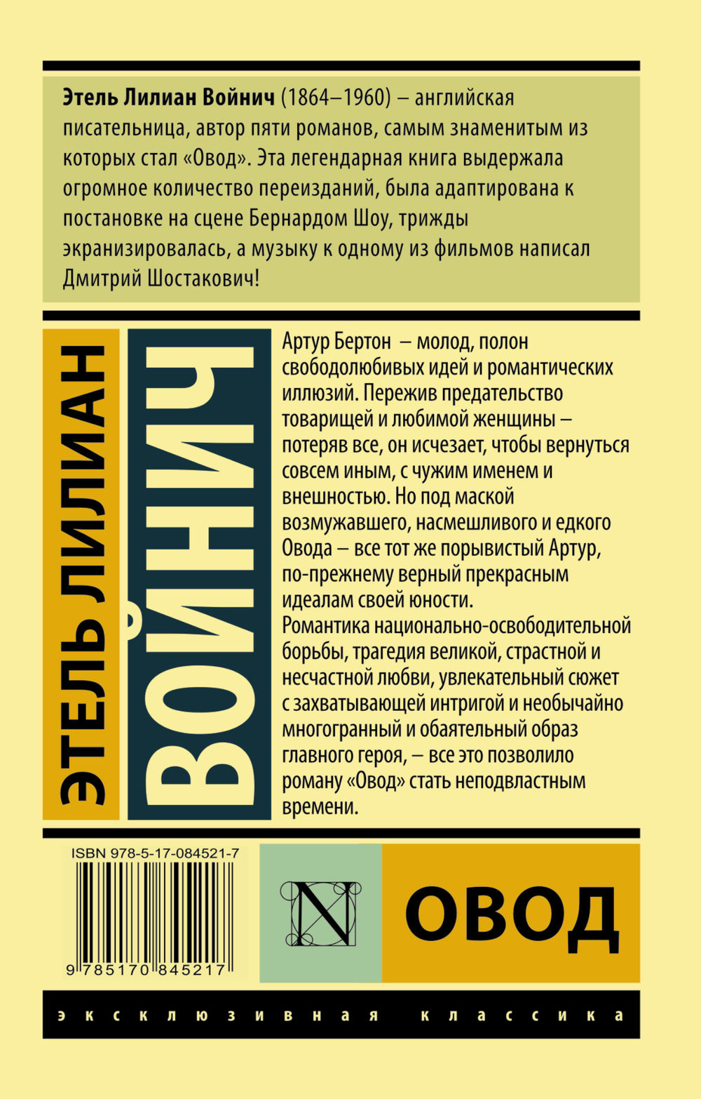 Первая книга трилогии об Артуре-Оводе, бесстрашном борце за свободу Италии, чье имя стало символом мужества и несгибаемой воли. Его предали люди, которых он любил больше всего на свете. Его презирали и считали предателем товарищи по борьбе. Но он нашел в себе силы не сломаться, выстоять – и снова сражаться за идеалы, в которые верит. Единственное, чего не хочет Овод, – быть узнанным теми, кто когда-то несправедливо оскорбил его. Особенно Джеммой – женщиной, которую он любит все эти годы...