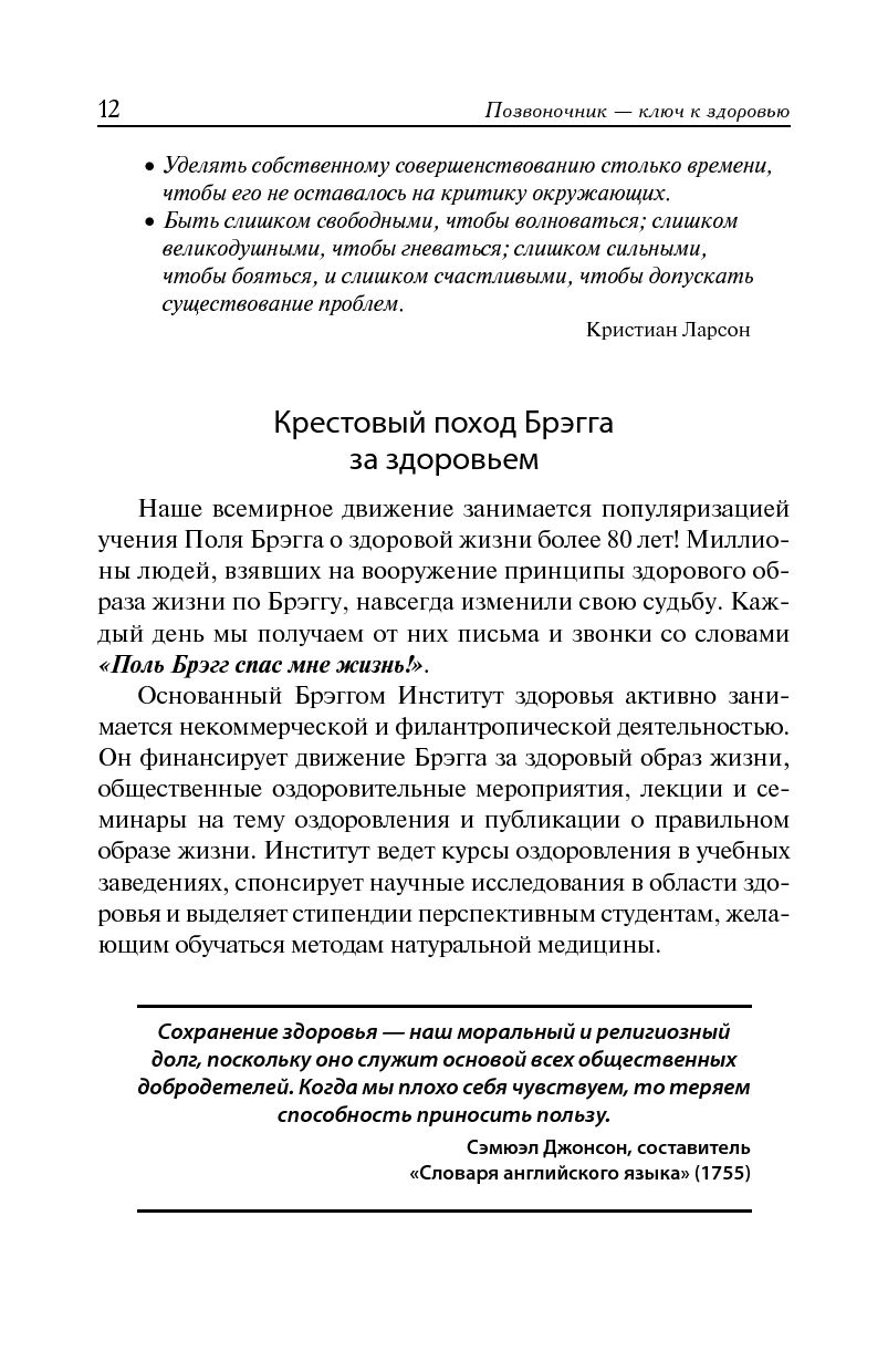 Малоподвижный образ жизни является нормой для нашего времени. Мы всё больше сидим перед телевизором или компьютером. Долгие часы без активных движений и плохая осанка делают своё дело, и со временем наша спина становится скованной и начинает болеть при каждом движении. Именно это заставляет нас чувствовать себя старыми и разбитыми. В этой книге Поль и Патриция Брэгг рассказывают, как вы можете восстановить силу и гибкость спины и как это помогает вернуть молодость и энергичность всему вашему телу. Авторы предлагают читателям возможность вернуть здоровье позвоночнику и навсегда избавиться от боли с помощью специально разработанных ими принципов питания, физических упражнений, приёмов улучшения осанки и оздоровительного массажа.