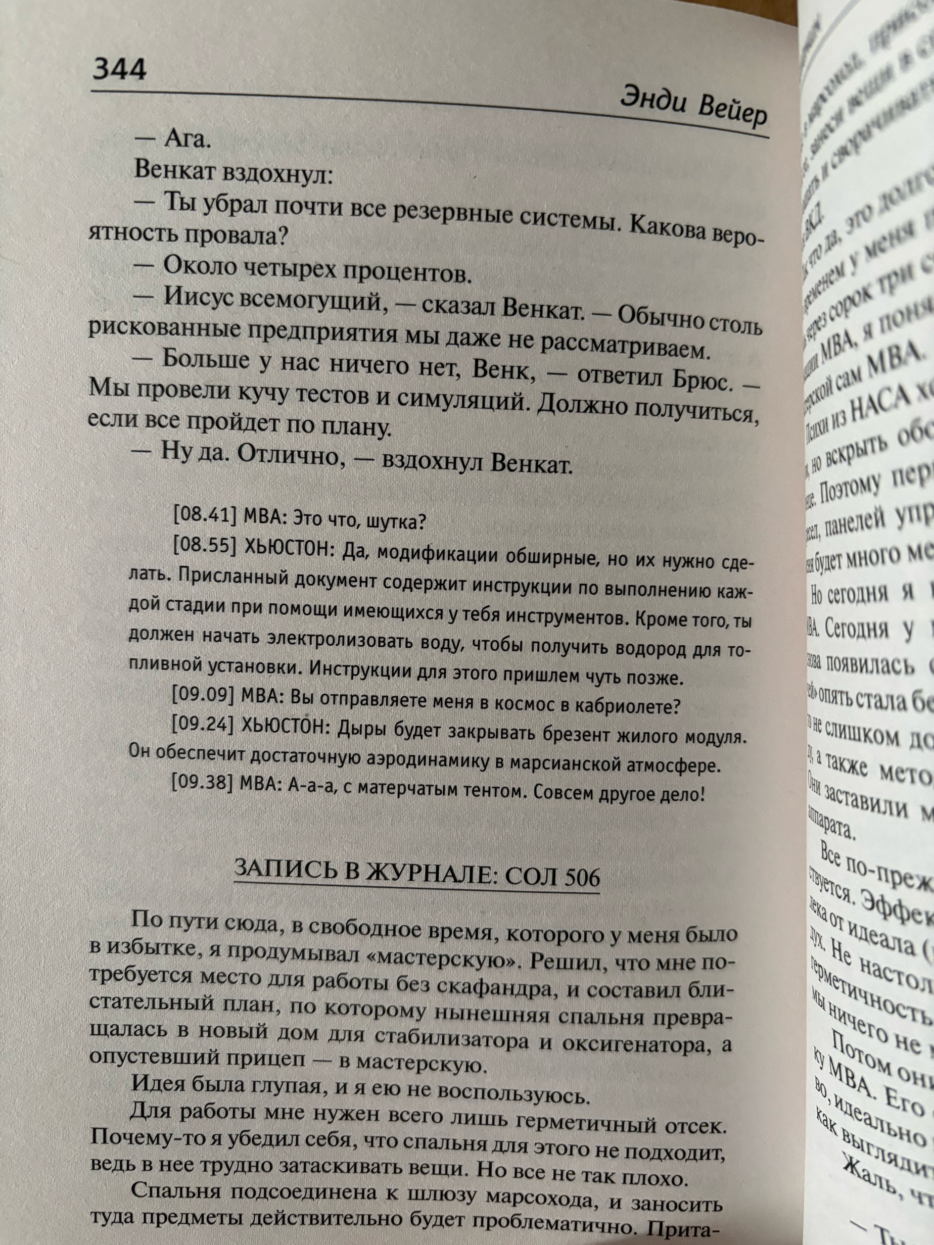 Очень легко читающаяся "твёрдая" научная фантастика. Читается за пару-тройку часов, повествование обильно усыпано шутками и запоминающимися фразами, вся научность подаётся простым понятным языком в стиле науч-попа (хоукинг, докинз и т.д.). Стиль дневника от первого лица, а с учётом техничности, будто блог космонавта читаешь. Есть небольшие нереалистичности, если совсем уж придираться. Многие фундаментальные проблемы, которые человечество до сих пор не решило - типа космической радиации, марсианской пыли, нерентабельности пилотируемых человеком полётов на Марс и т.д. - оставлены автором без комментариев. И это от сотрудника НАСА-то! Но книга рекомендуется всем любителям фантастики и не только, всем-всем-всем. Даже вашим родителям понравится.