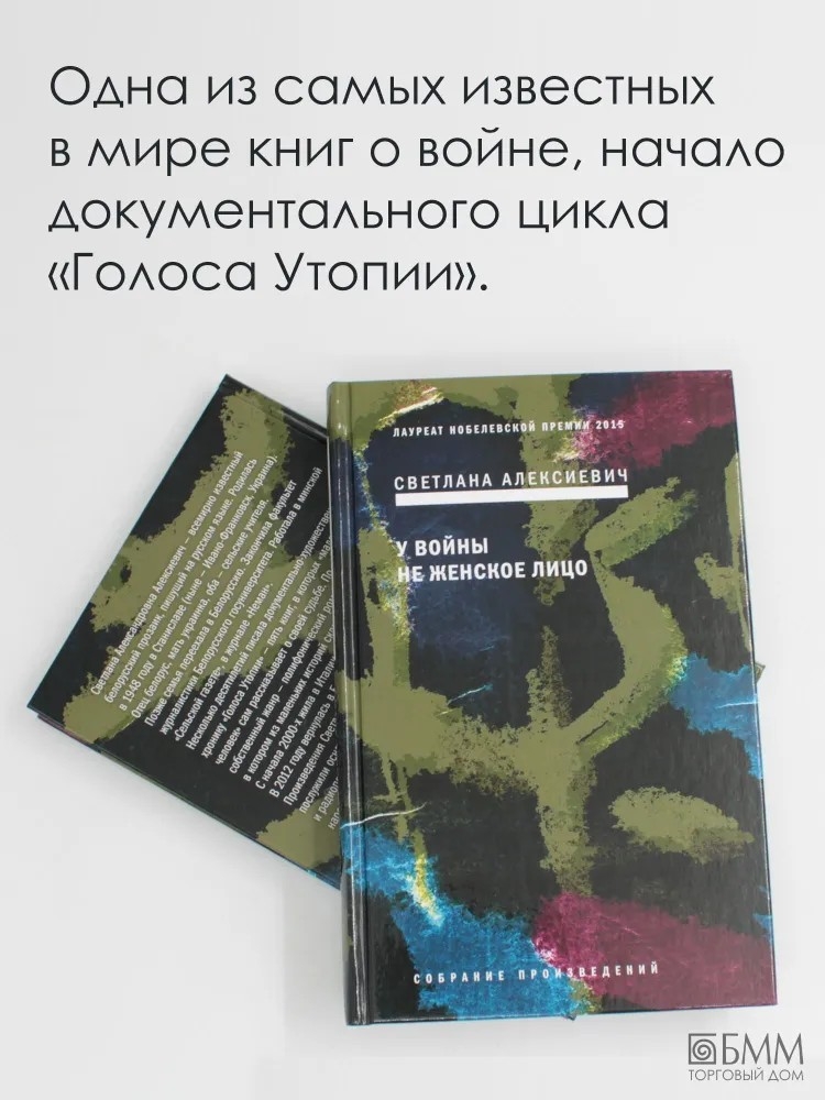 Одна из самых известных в мире книг о войне, положившая начало знаменитому художественно-документальному циклу Светланы Алексиевич «Голоса Утопии». Переведена более чем на двадцать языков, включена в школьные и вузовские программы во многих странах. Последняя авторская редакция: писательница, в соответствии со своим творческим методом, постоянно дорабатывает книгу, убирая цензурную правку, вставляя новые эпизоды, дополняя записанные женские исповеди страницами собственного дневника, который она вела в течение семи лет работы над книгой. «У войны не женское лицо» – опыт уникального проникновения в духовный мир женщины, выживающей в нечеловеческих условиях войны.