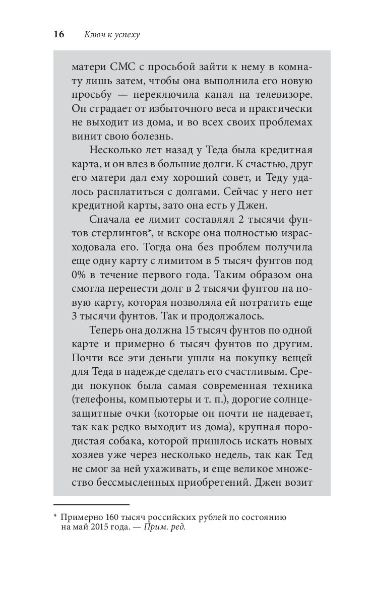 Главная цель этой книги – помочь вам прекратить страдания, которые приносят долги, и стать счастливыми благодаря свободе от долгового рабства и отсутствию финансовых проблем. Мы разберем навязанные нам психологические установки и иллюзии, формирующие легкомысленное отношение к деньгам и неразборчивость в потреблении, которые обычно становятся причиной долгов и тяжелого жизненного кризиса.
