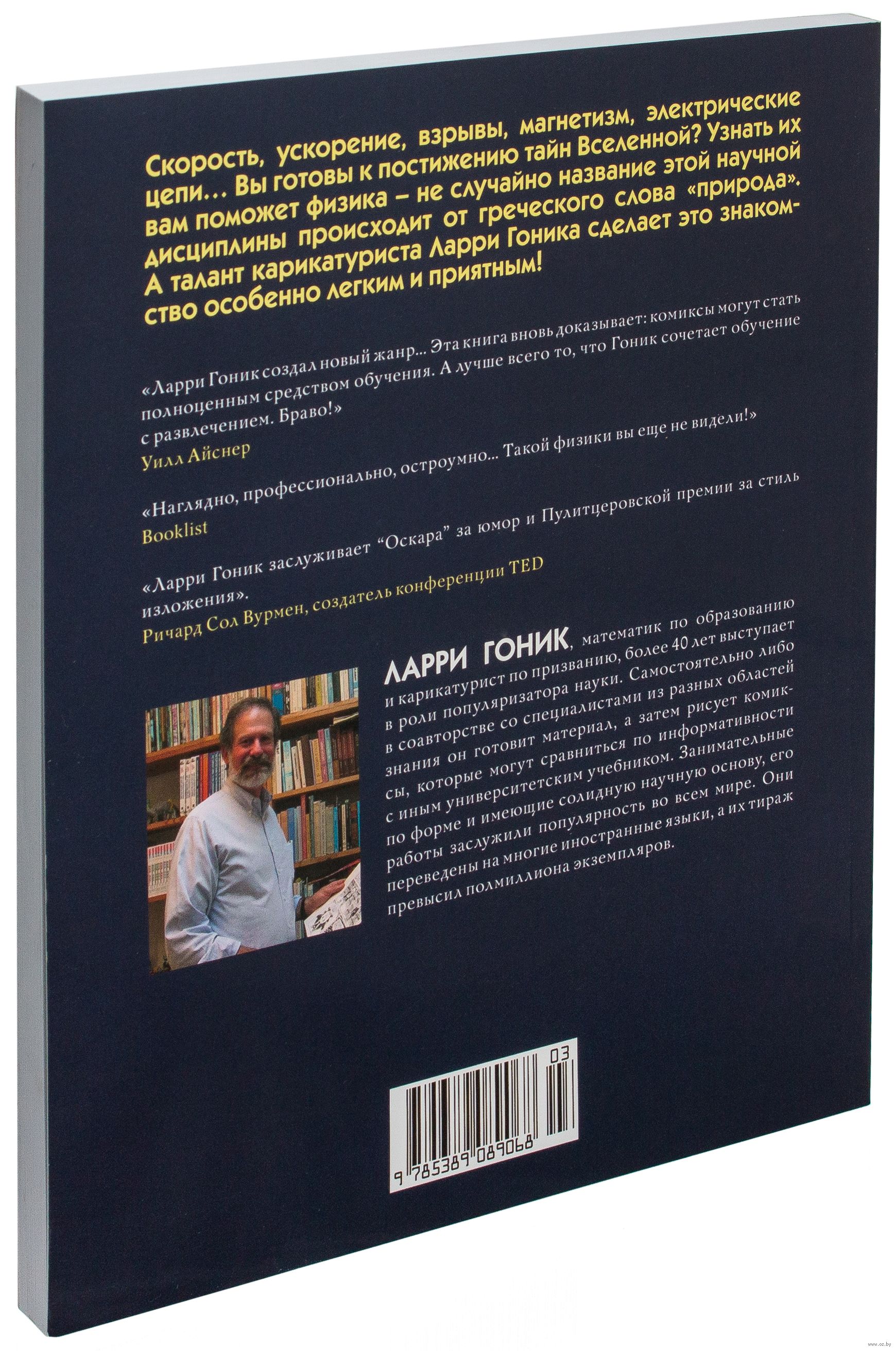 Замечательная книга! Я считаю: Ларри Гоник создаёт самые нужные, практичные и информативные книги. Воистину "Гоник - единственный в своём роде". Книга отлично дополняет библиотеку школьника, студента и современного учителя. Комикс помогает удивительно просто понять такую сложнкю науку как физика на примерах, благодаря которым намного легче запомнить материал. Также мне очень нравятся иллюстрации и юмор. По моему мнению, книга лучшая в своём роде. Что не мало важно книга очень практичная: листы сделаны из плотной бумаги, а краска стойкая и яркая. Книга пригодится для тех, кто только начинает изучать науку и кто углубленно изучает физику.