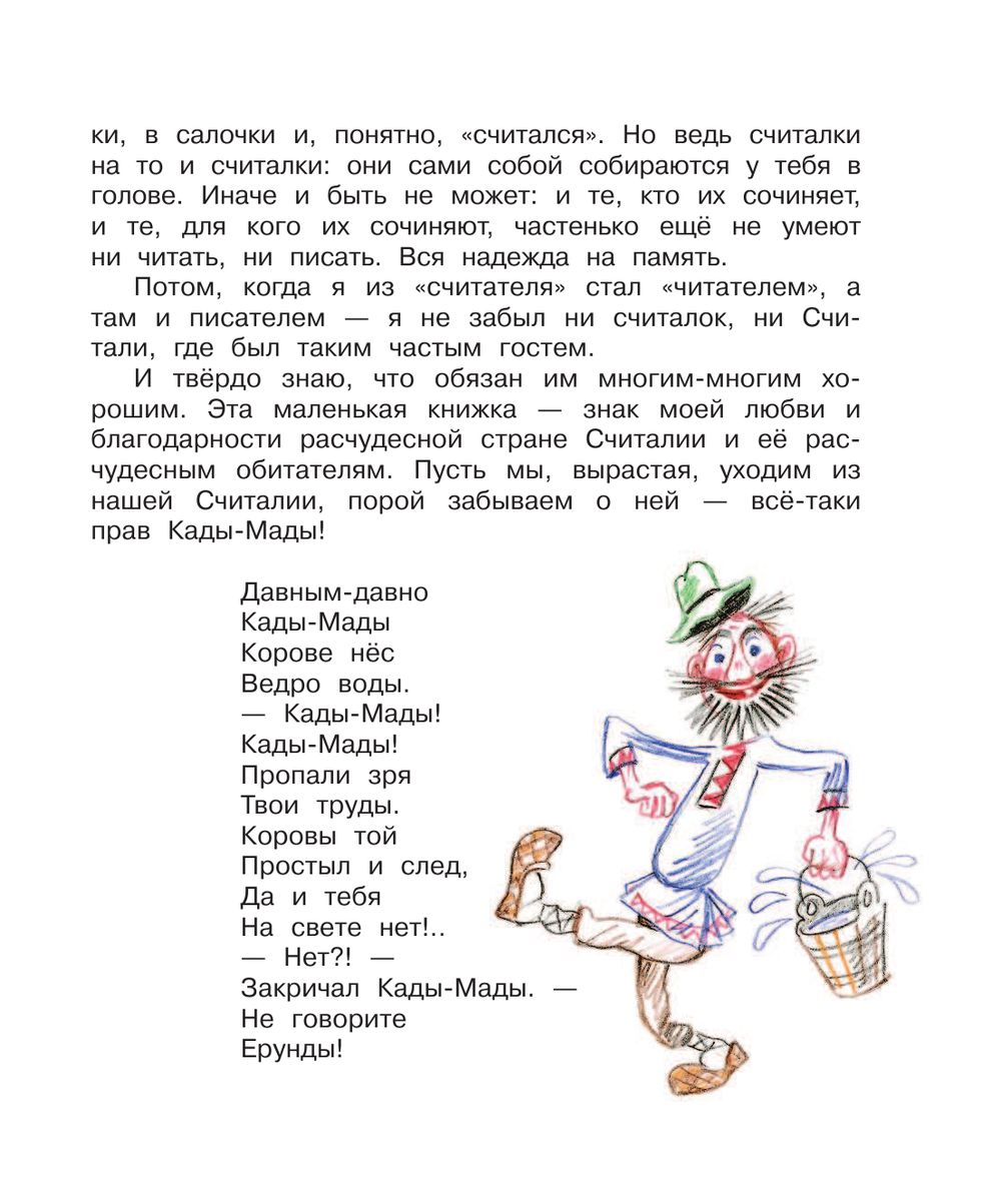 В расчудесной стране Считалии живут весёлые, озорные стихи-считалочки. Без них не обходится ни одна детская игра в прятки, в салочки, – ни дома, ни во дворе, ни возле школы... Замечательный детский поэт Борис Заходер собирал детские считалочки всю жизнь и придумал для ребят эту смешную, замечательную книжку. Она так и называется ""Считалия"". Иллюстрации в книге известного художника А. Елисеева.