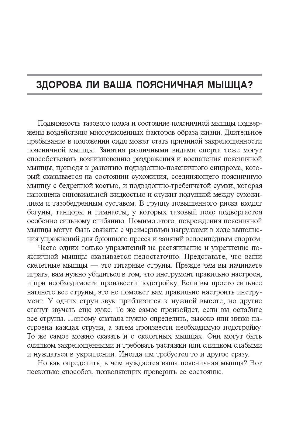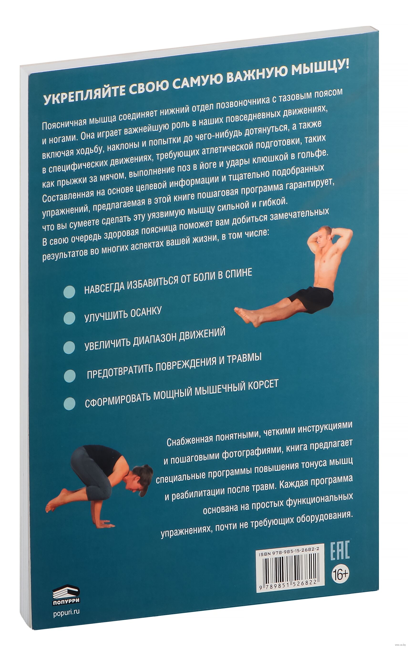 Поясничная мышца играет важнейшую роль в наших повседневных движениях, включая ходьбу, наклоны и попытки до чего-нибудь дотянуться, а также в специфических движениях, требующих атлетической подготовки, таких как прыжки за мячом, выполнение поз в йоге и удары клюшкой в гольфе. Составленная на основе целевой информации и тщательно подобранных упражнений, предлагаемая в этой книге пошаговая программа гарантирует, что вы сумеете сделать эту уязвимую мышцу сильной и гибкой.